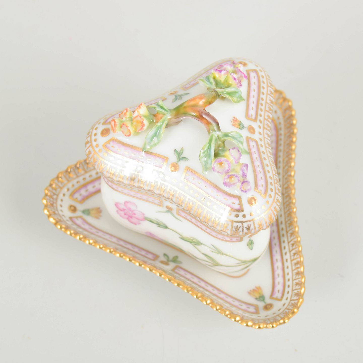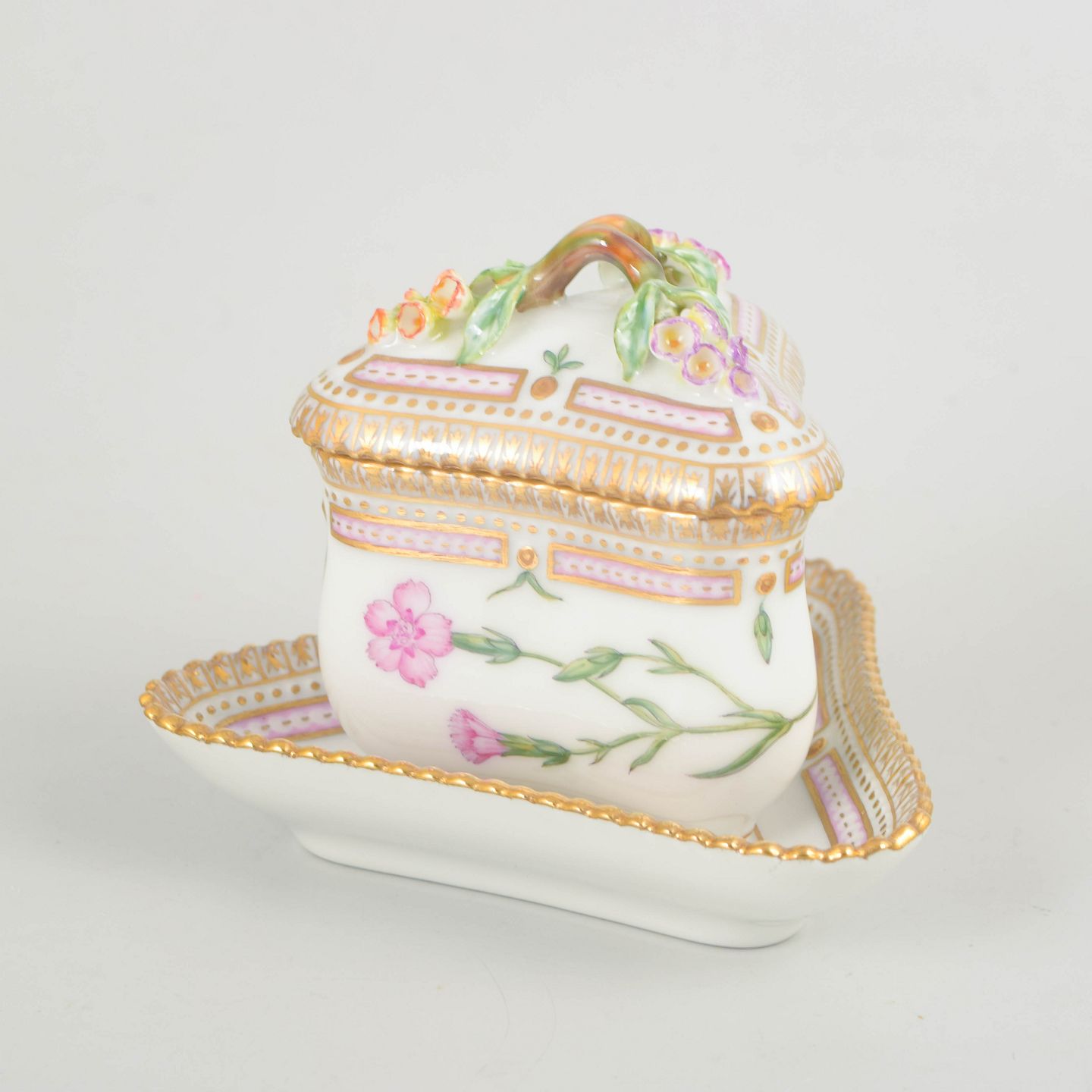 Bio: Flora Danica-stellet blev introduceret i 1790 og regnes blandt Royal Copenhagens mest prestigefyldte produktioner. Dekorationerne er baseret på det monumentale botaniske værk Flora Danica og er kendetegnet ved høj detaljerigdom og fremragende håndværksmæssig kvalitet. Mindre serveringsdele som cremekopper var en naturlig del af det klassiske kaffestel og er i dag eftertragtede samlerobjekter.