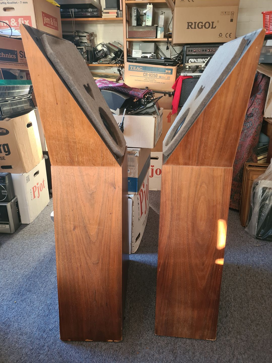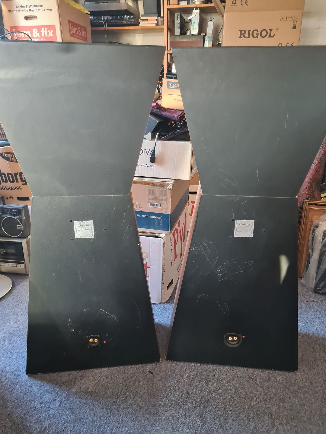 Par gulvhøjtalere SPICA Angelus. Testet og lyder fint. Fremstår dog med lidt skrammer blandt andet ved basen af højtalerne. (Billede)