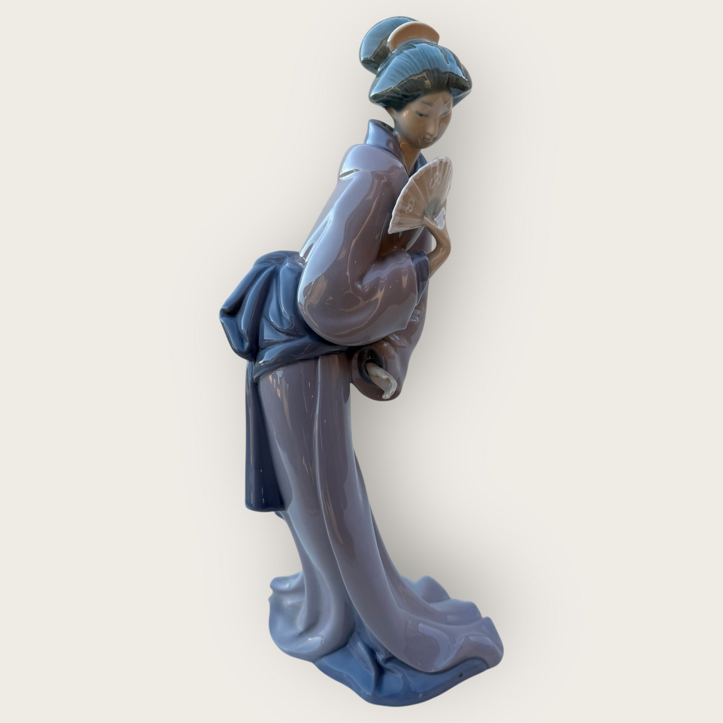 Lladro NAO porcelæns figur, Spanien, Japansk Geisha med vifte, 31cm høj *Fin stand*