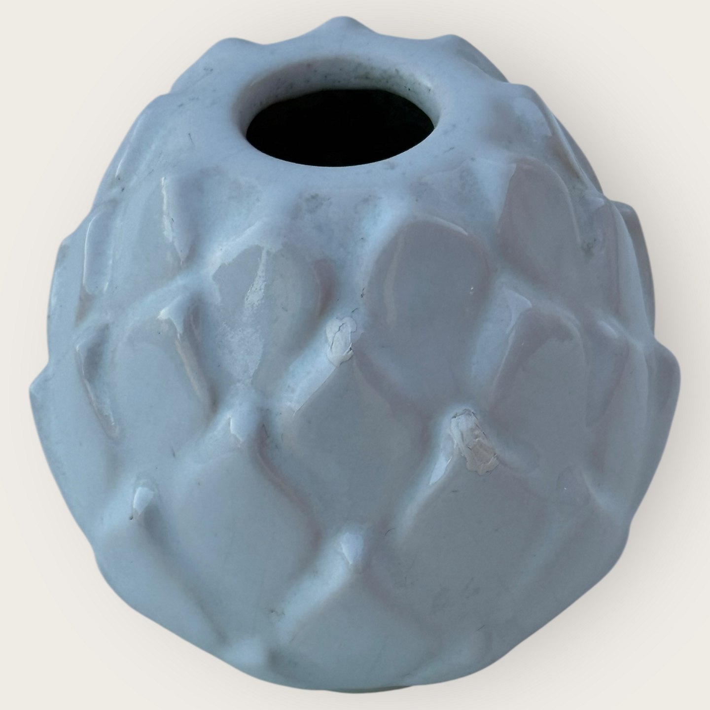 Bornholmsk keramik, Michael Andersen, Hvid keramikvase, #5103, ca. 8,5cm høj*Fremstår med 2 små afslag/reparationer (se de sidste 2 foto)*