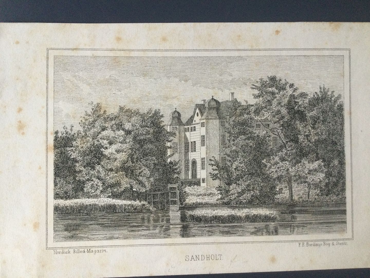 Radering af F.E. Bording - Sandholt Gods ca. 1870.