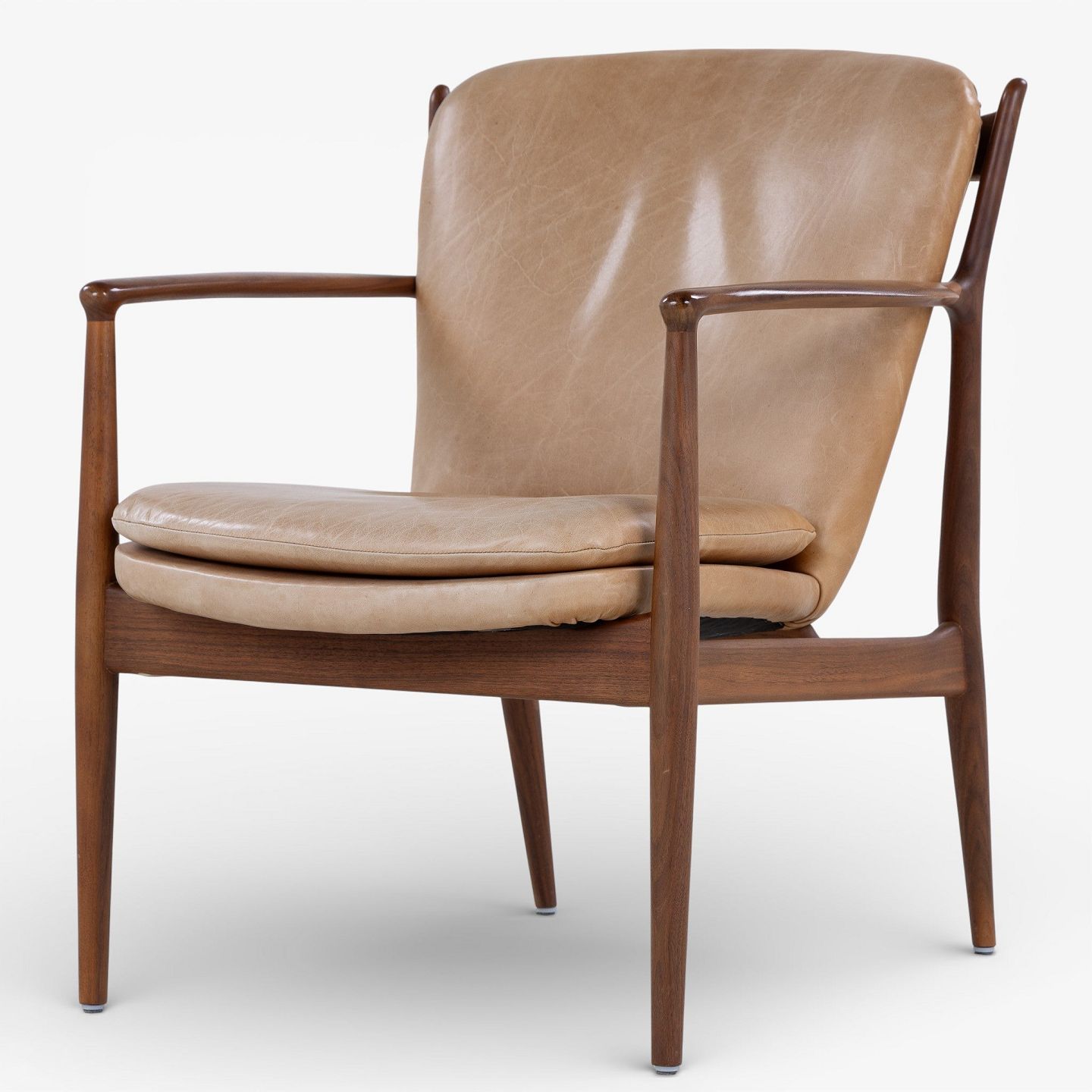 FJ 51 - Par 'Delegeret stolen'-lænestole i valnød og patineret naturlæder. Formgivet i 1951.