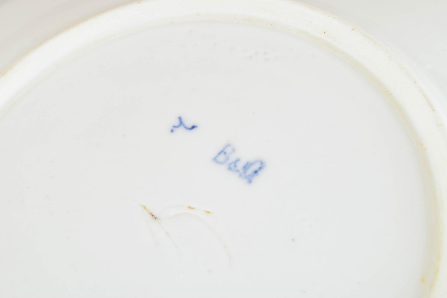Antik rund porcelænstallerken dekoreret med blå underglasur i det klassiske Sommerfugl-mønster. Dekorationen er centreret omkring en medaljon med sommerfugl og florale ranker, omgivet af den karakteristiske skællede rand og afsluttet med håndpålagt guldkant. En sjælden og tidlig tallerken fra Bing & Grøndahls produktion i slutningen af det 19. århundrede.