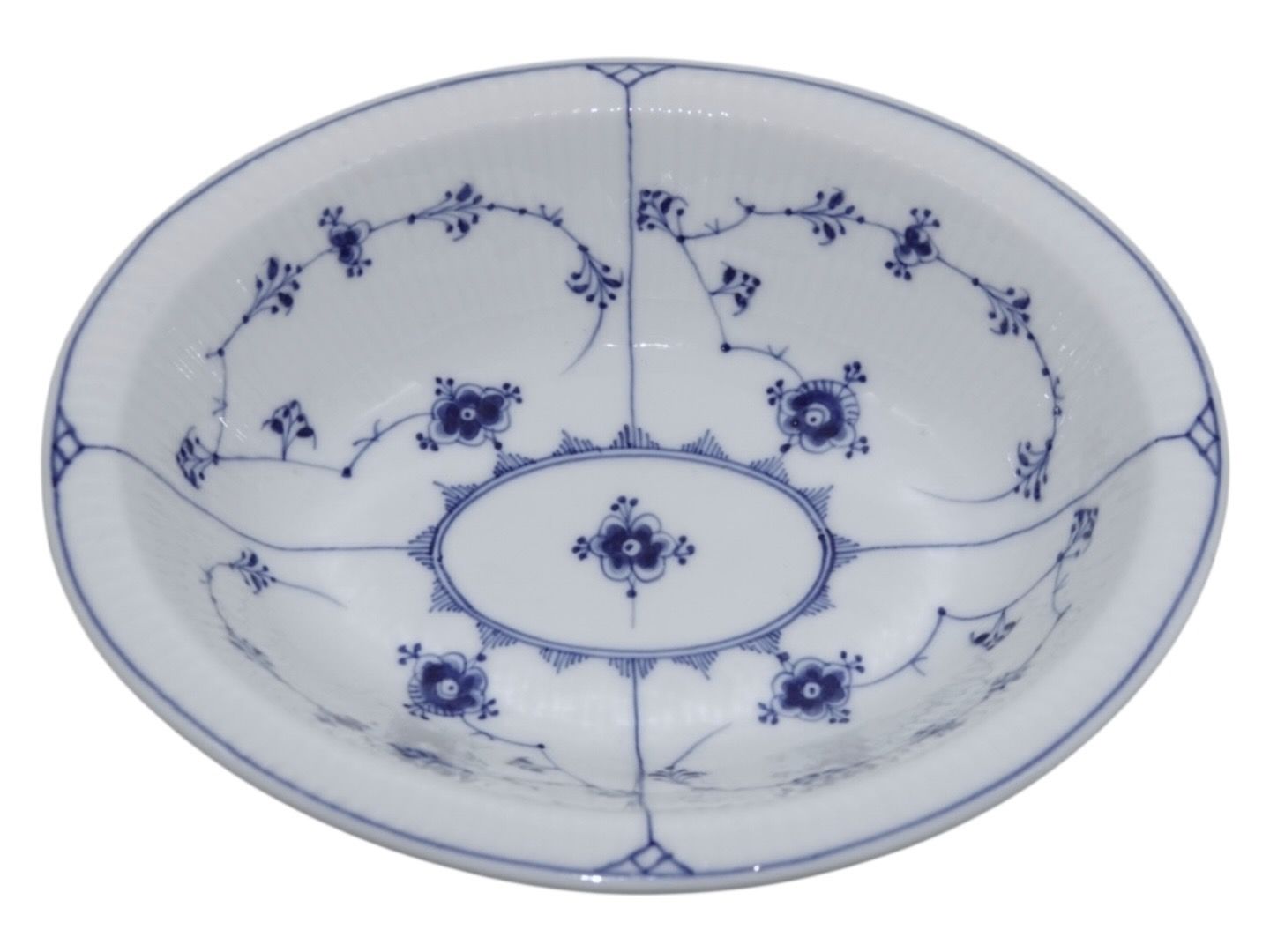 Royal Copenhagen Musselmalet Riflet, sjælden lille oval skål.