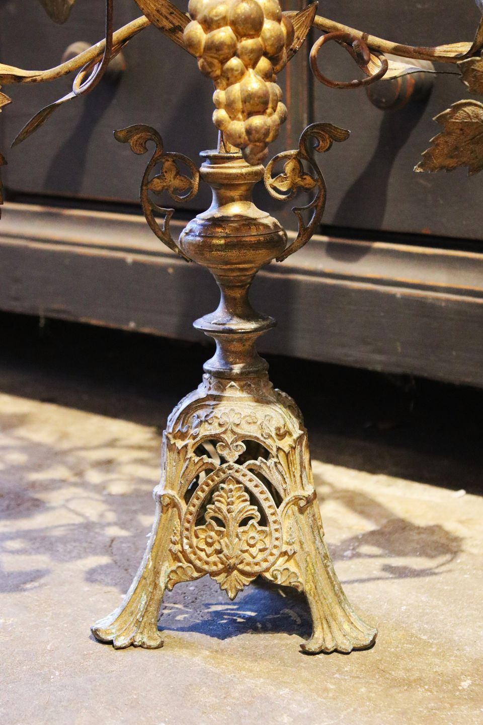 Antik fransk kirkestage i bronze med fin mørk patina fra omkring år 1900.