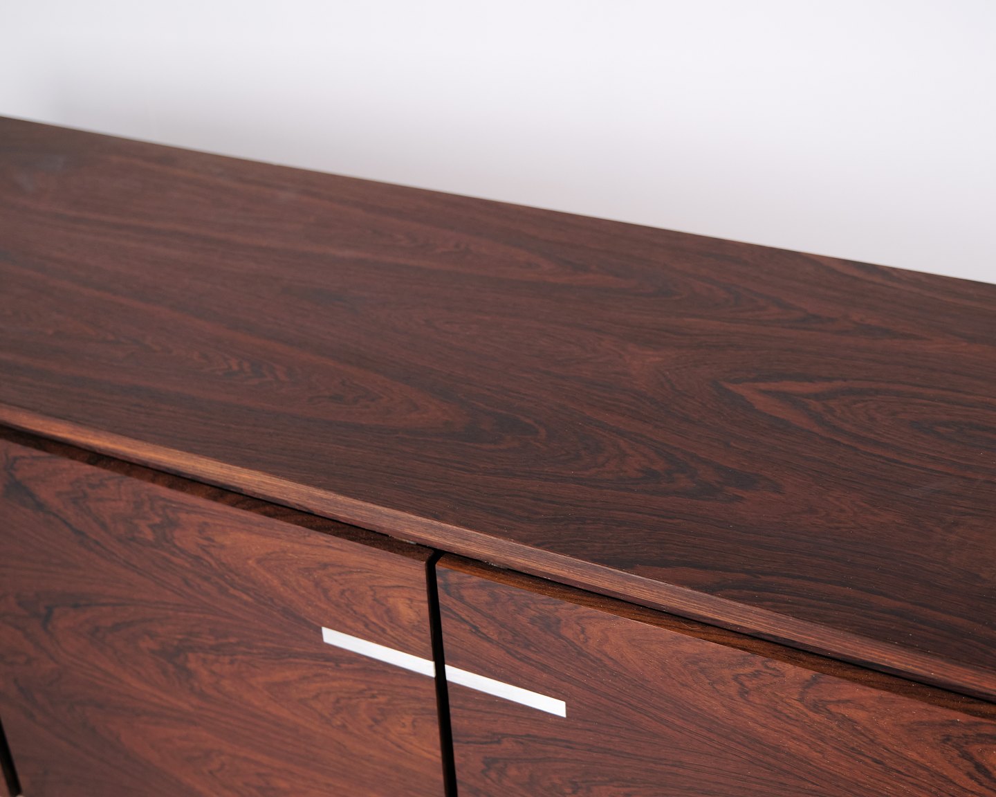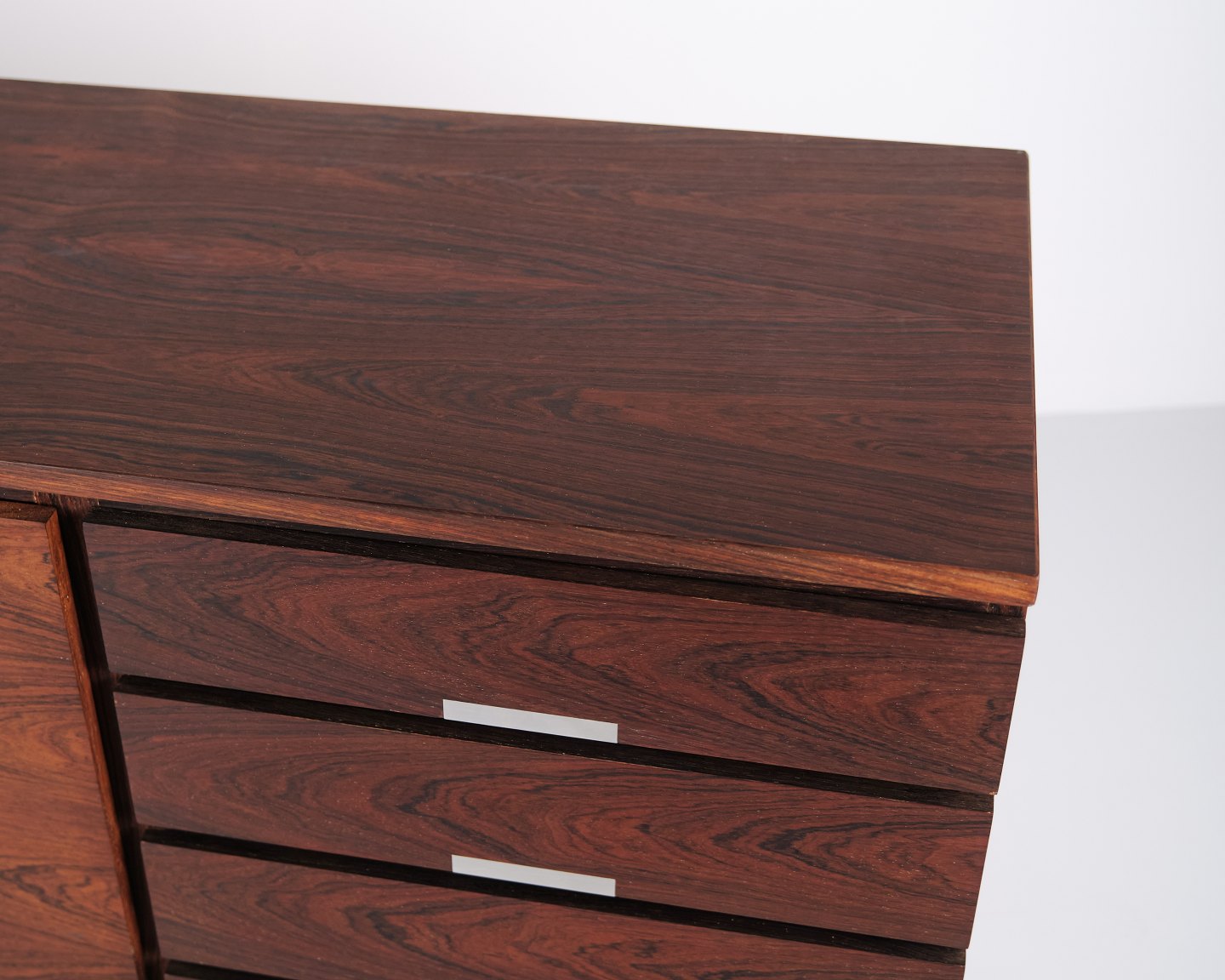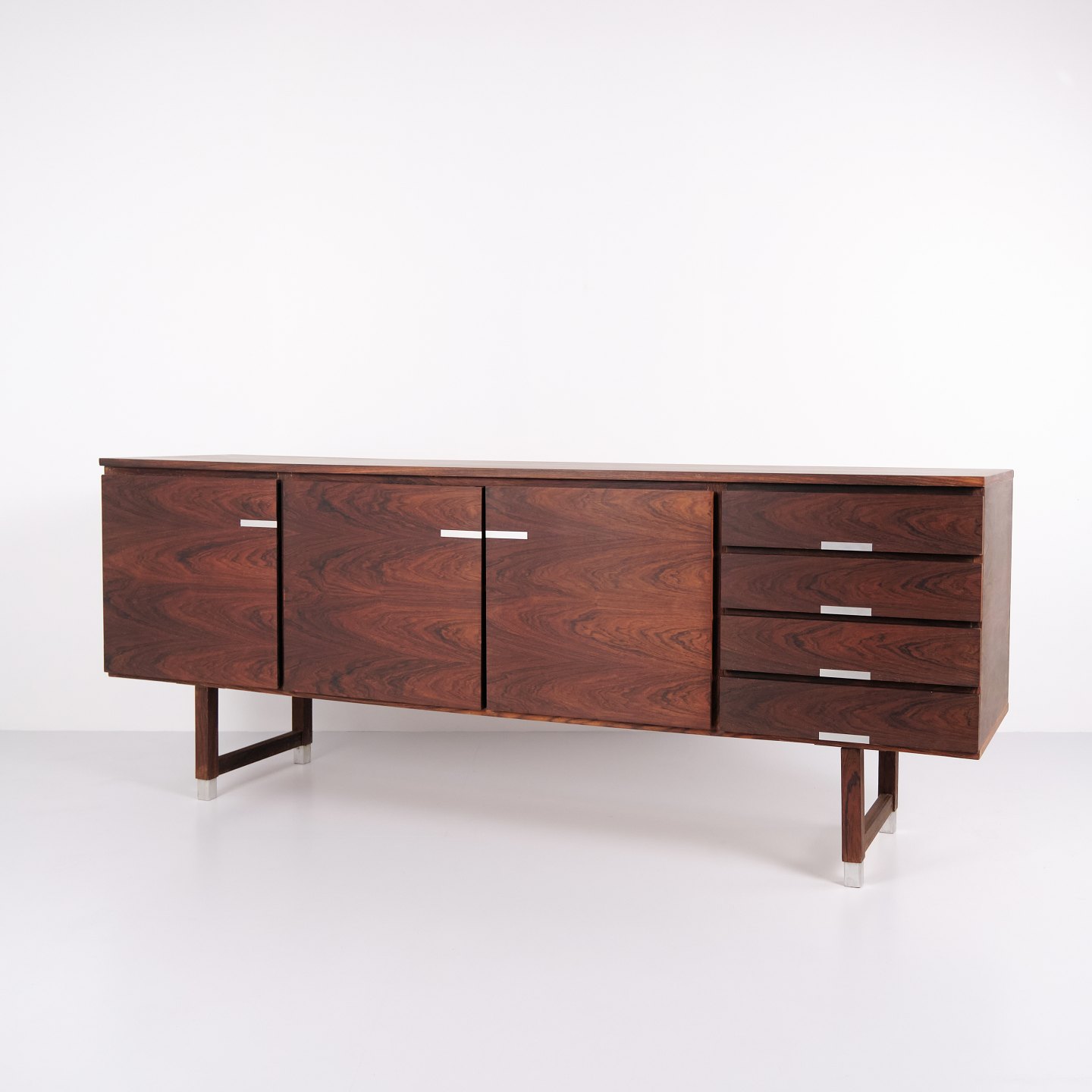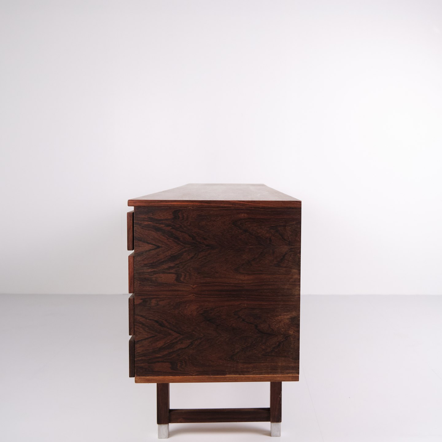 Skænk i palisander designet af Kai Kristiansen for Feldballes Møbelfabrik. Dansk design fra 1960’erne med alu greb og fødder.