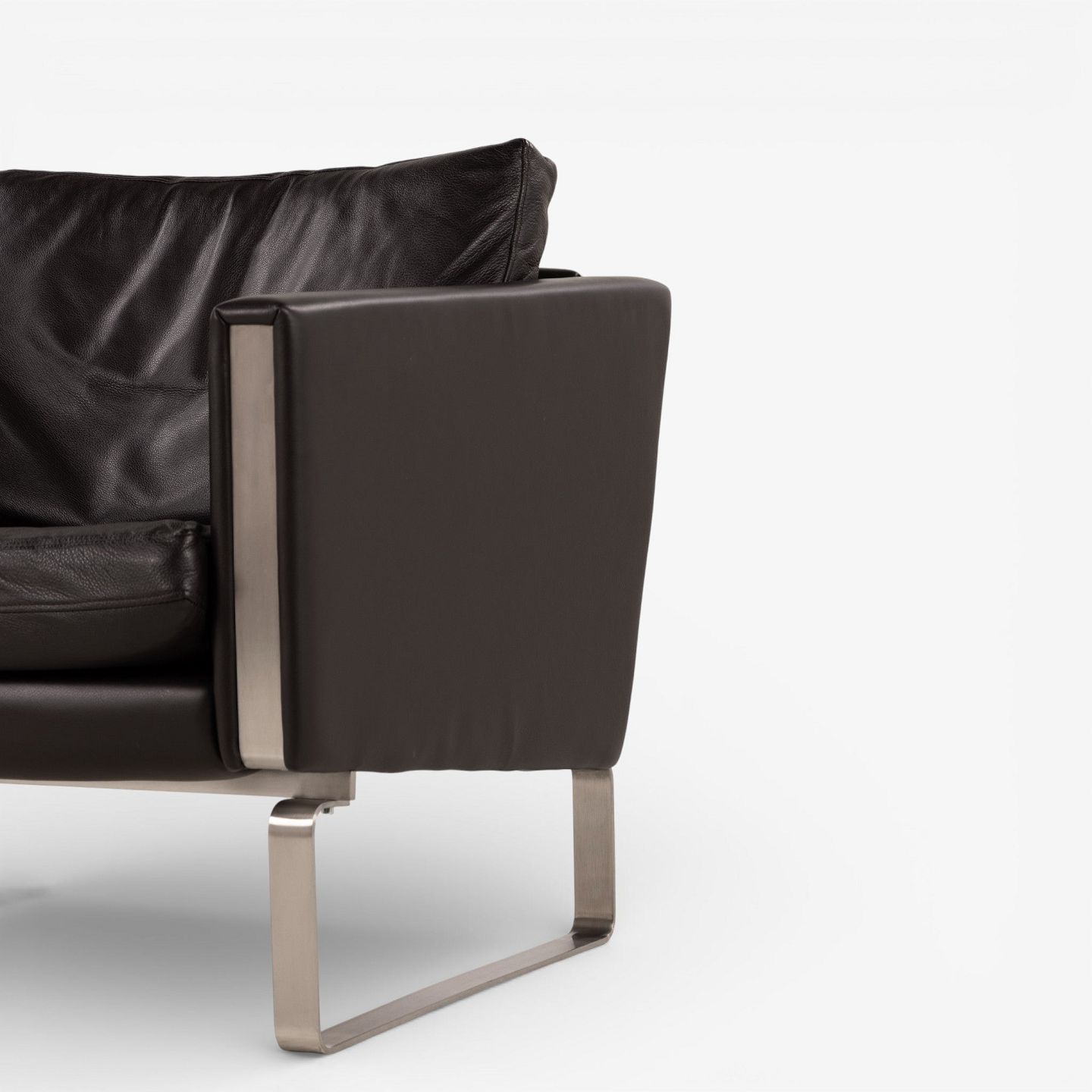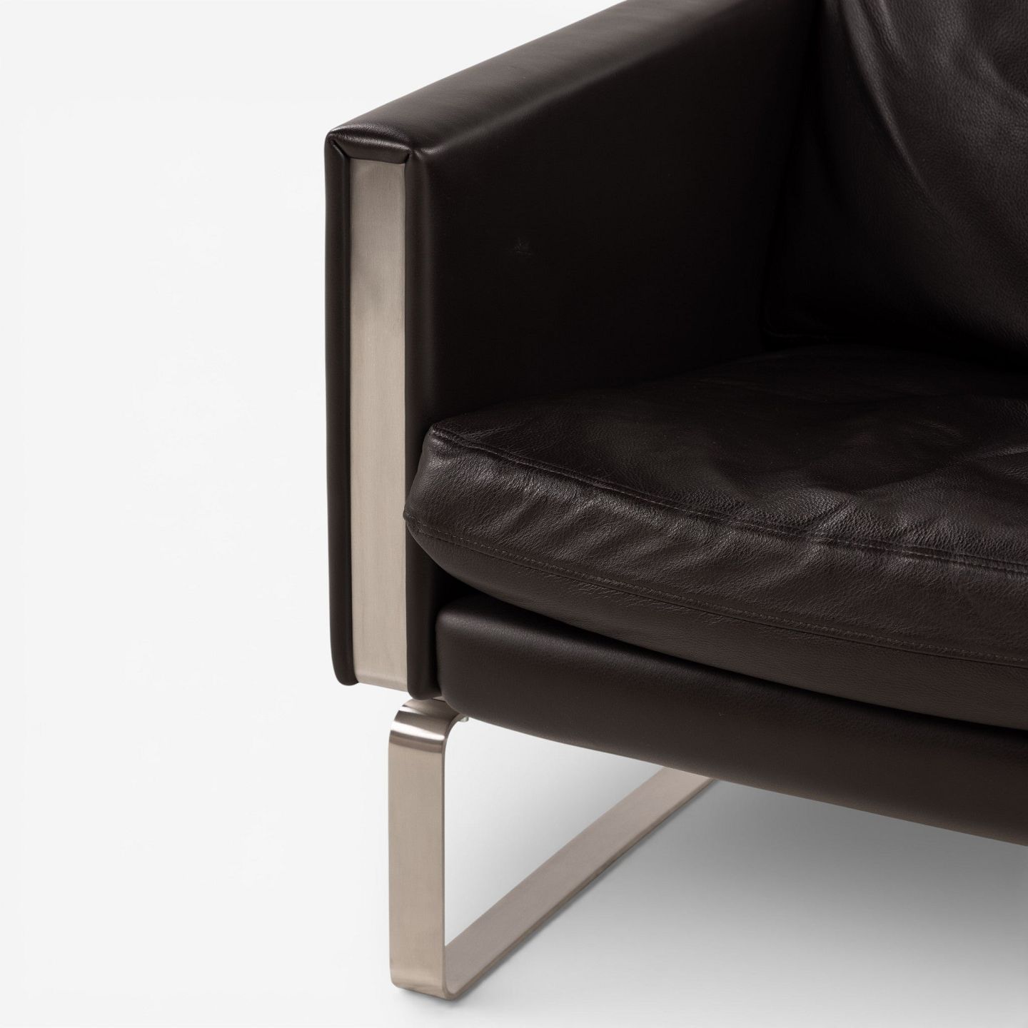 CH 101 - Lænestol i mørkebrunt, patineret semi-anilinlæder med stel i stål. Mærket fra producent.