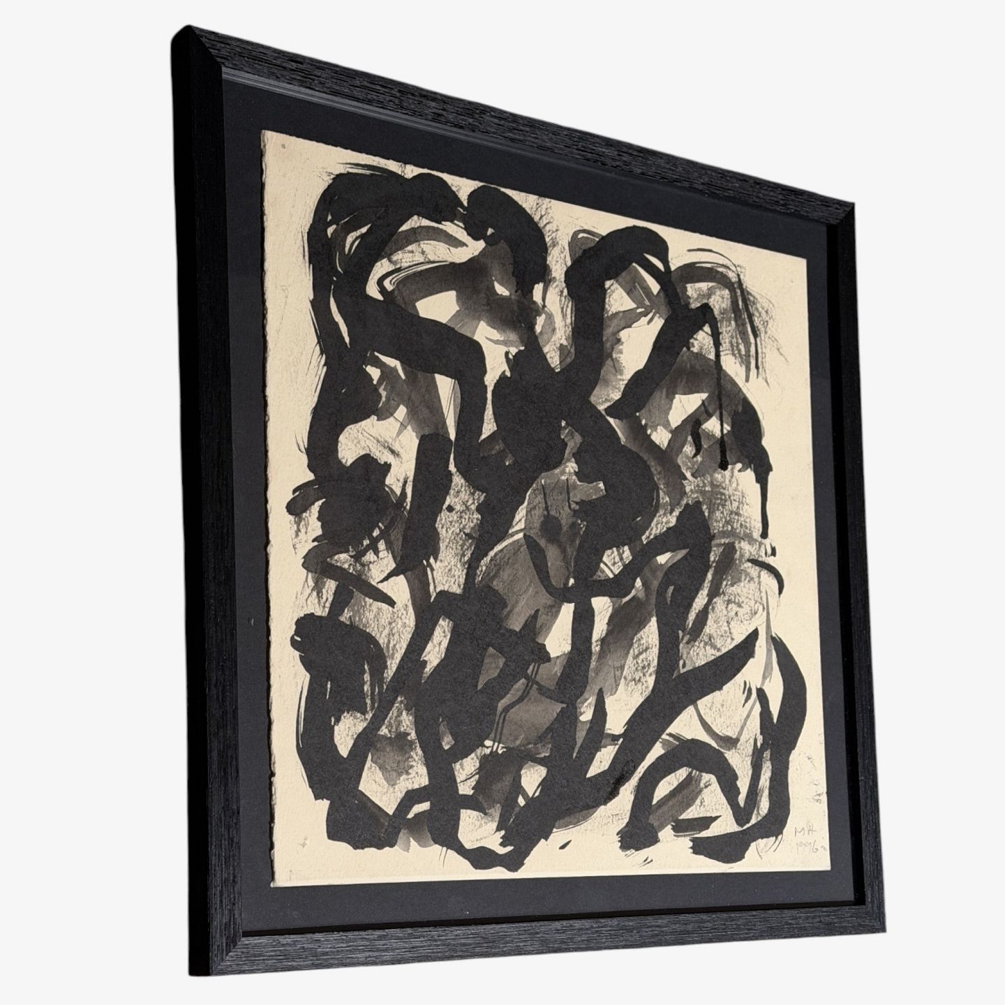 Gouache på papir i sort kvadratisk ramme. Signeret. 1996.
