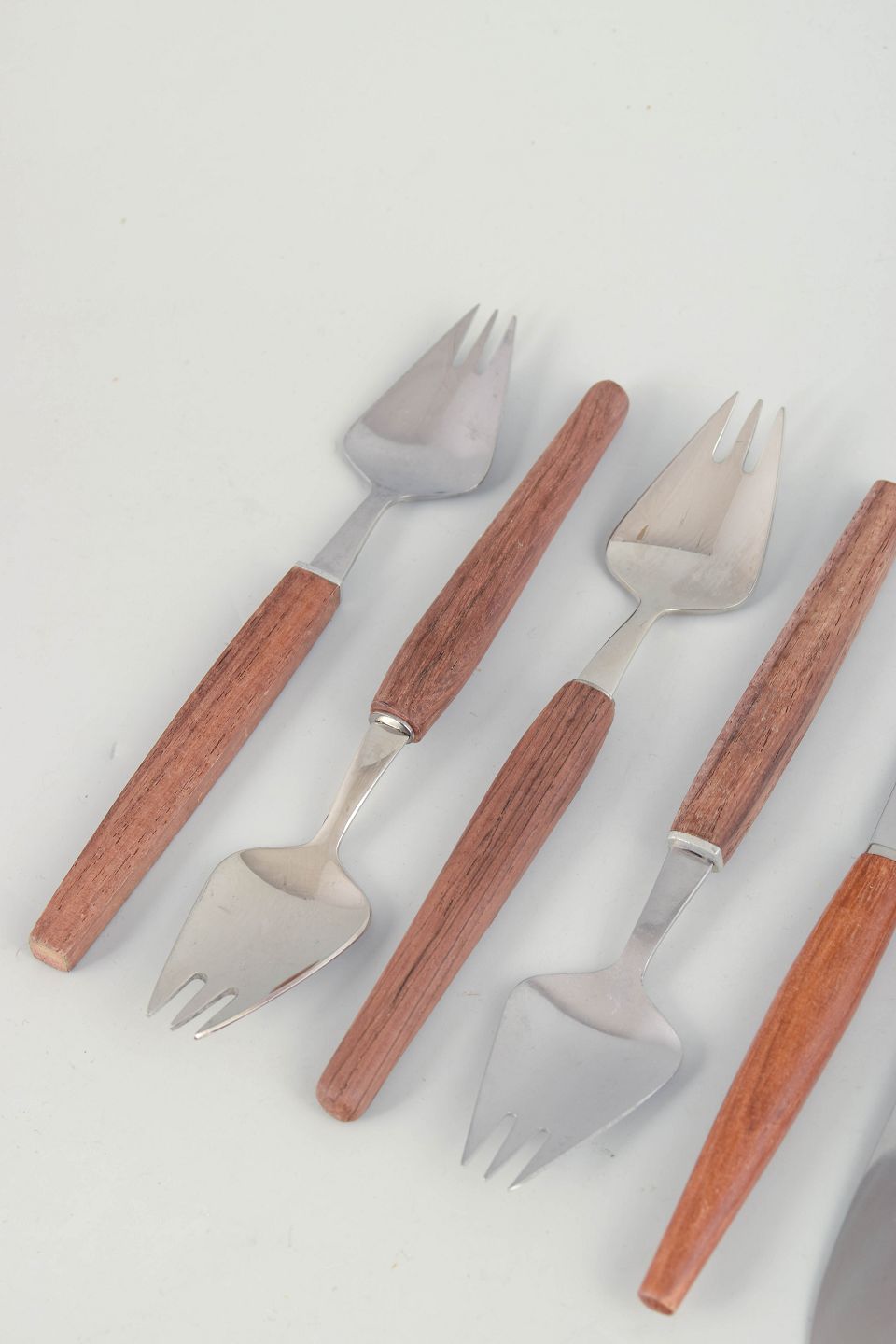 Svensk Frokostbestik til 4 Personer, teak og rustfrit stål.