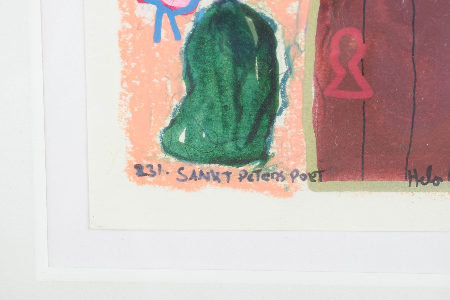 Maleriinspireret motiv med figurative og ornamentale elementer udført i blandteknik på papir, signeret og dateret 2003.