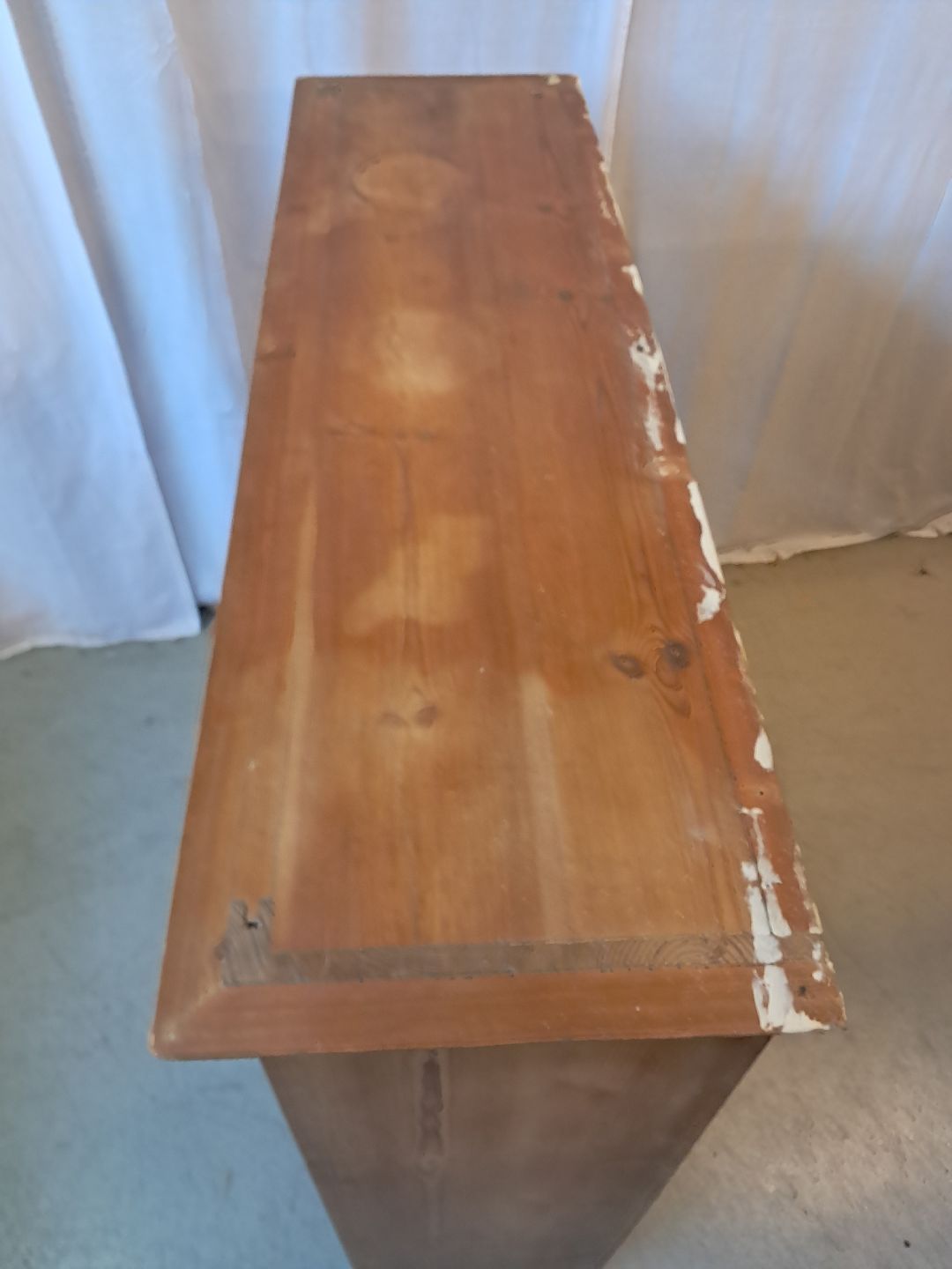 Gammelt køkkenskab i massivt fyrretræ, fra 1910erne.