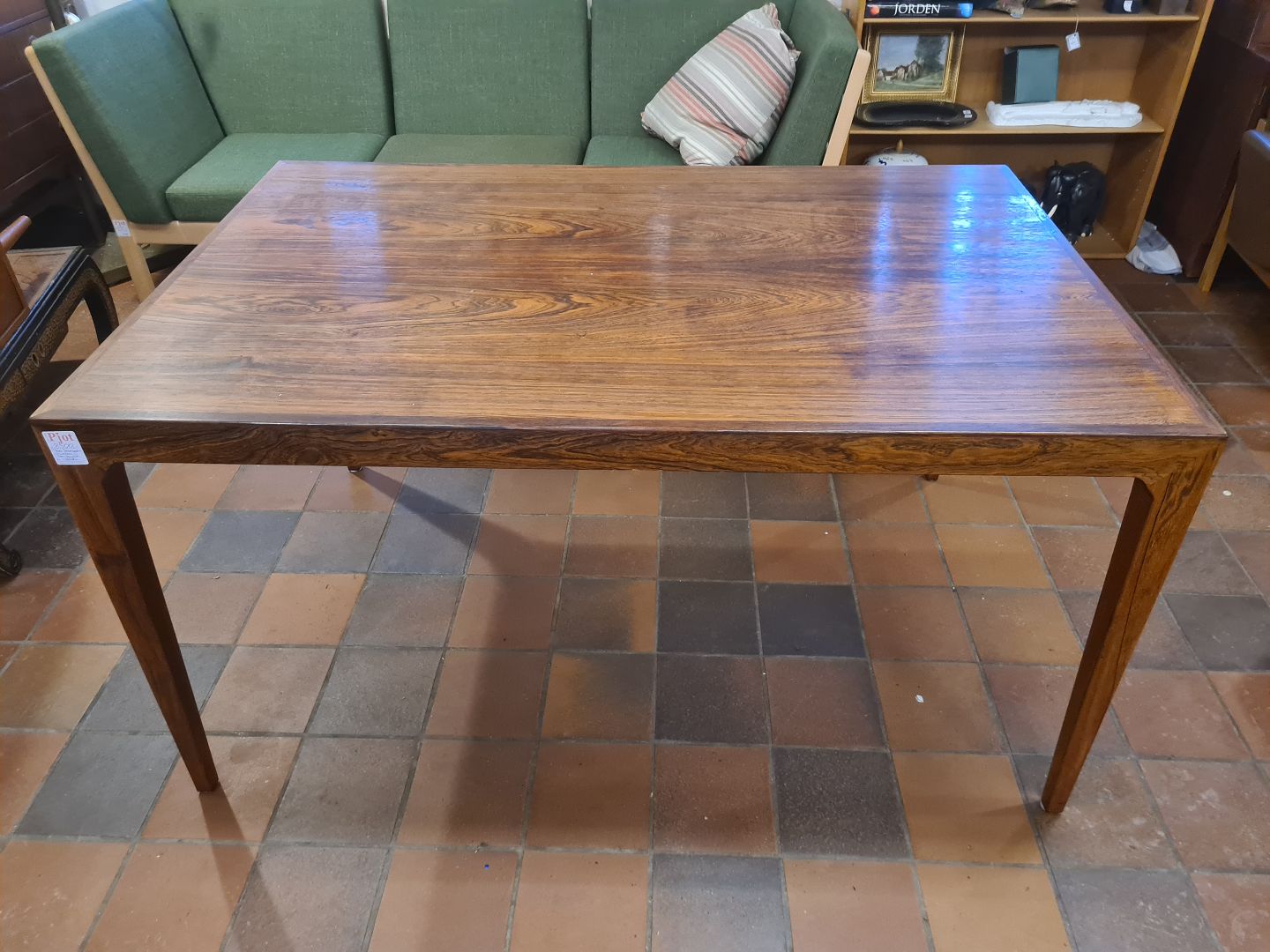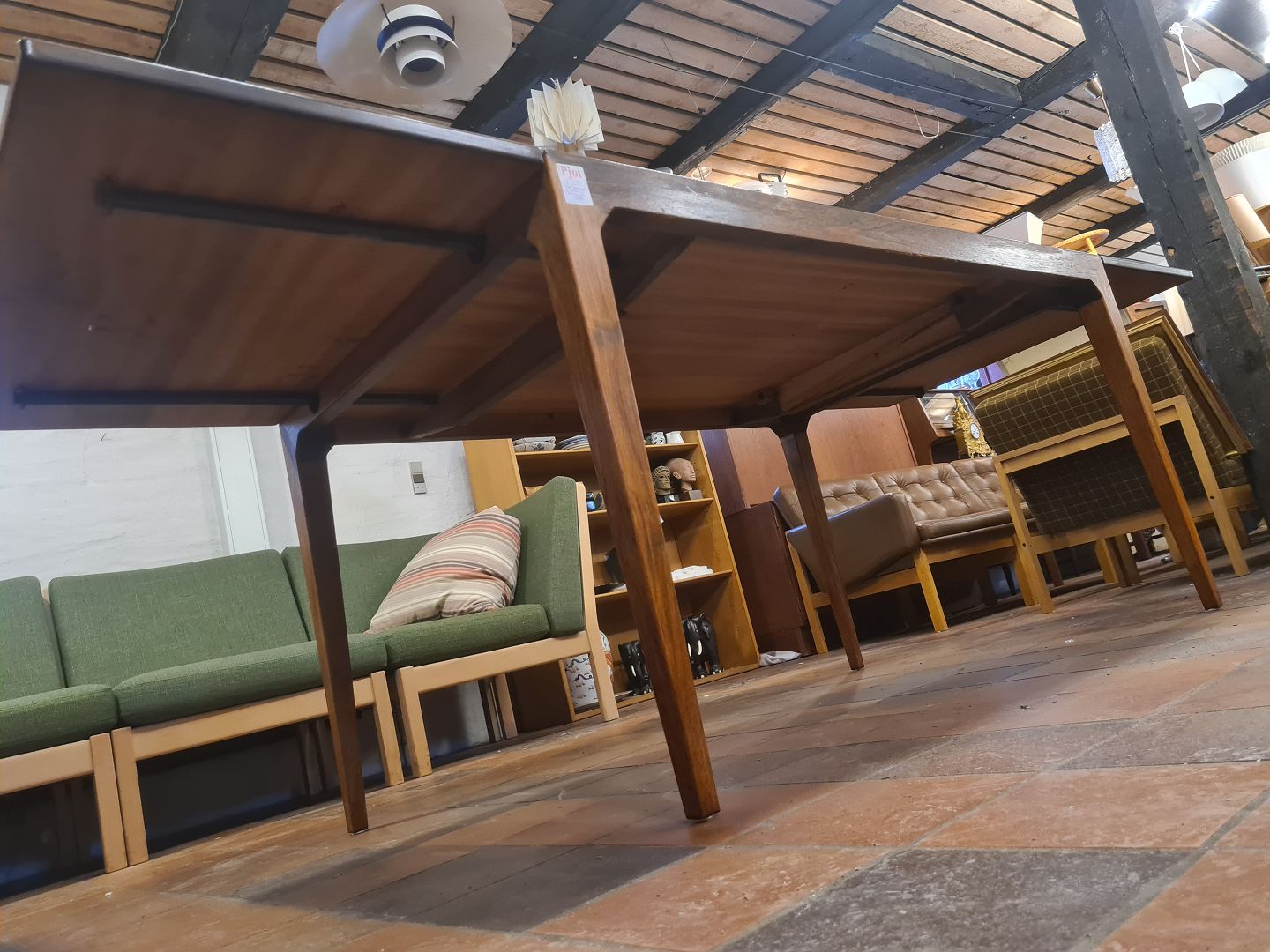 Text available in Danish: Kai Kristiansen spisebord m. 2 tillægsplader.