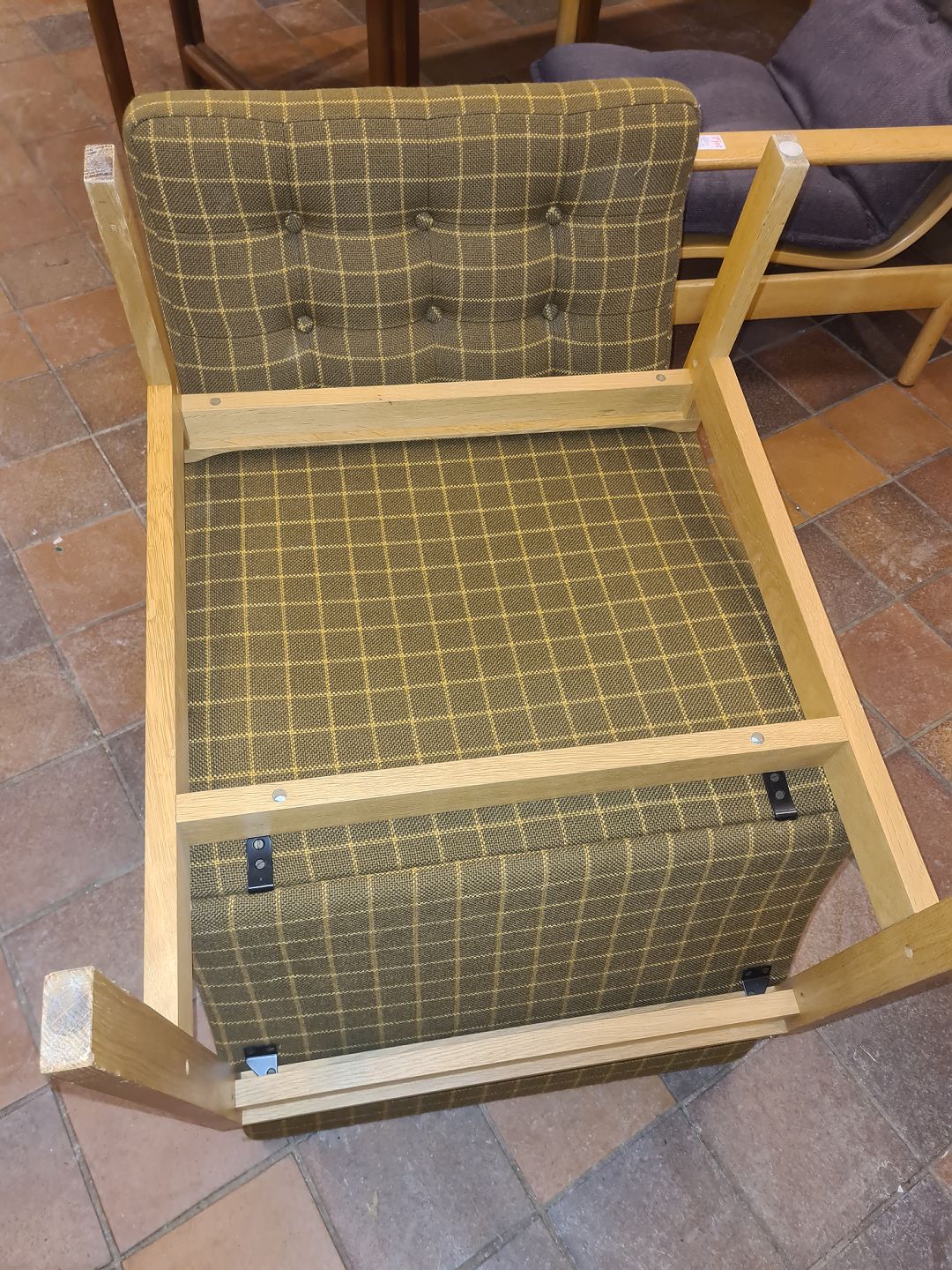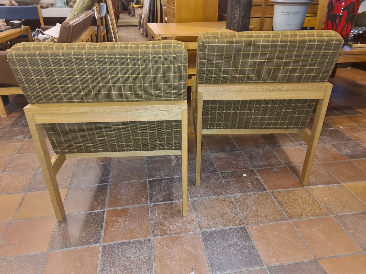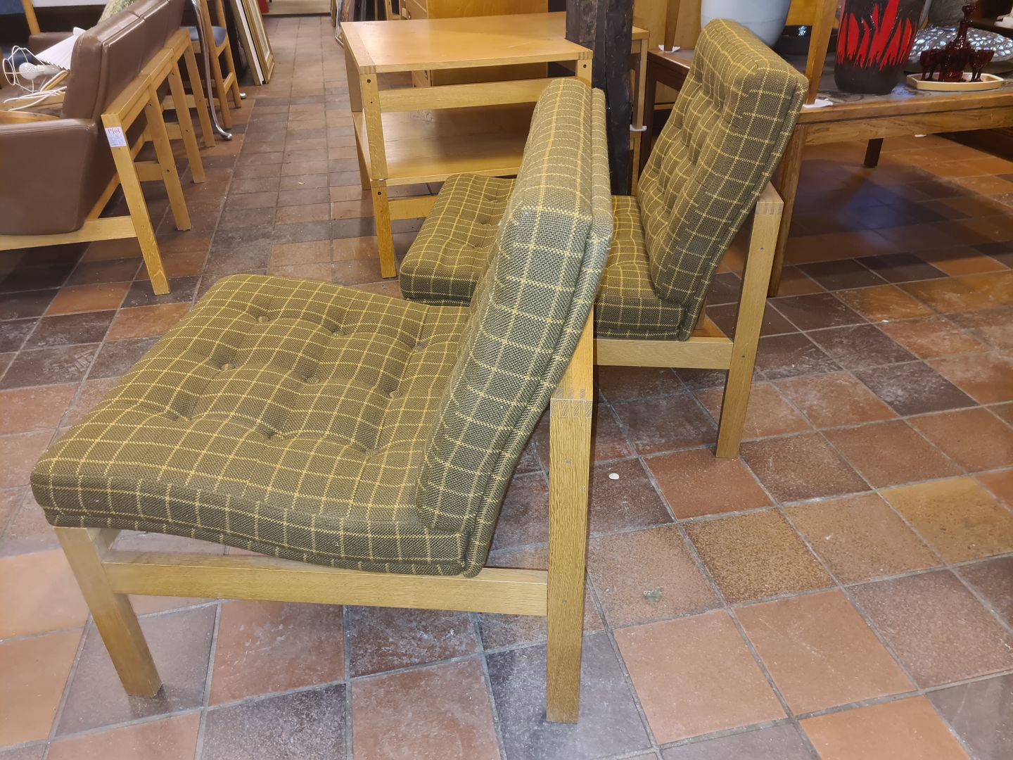 Ole Gjerløv Knudsen/ Torben Lind et par Moduline lounge stole udført i eg og betrukket med dybhæftet uldstof. Fremstillet hos France & Søn ca. 1970'erne.