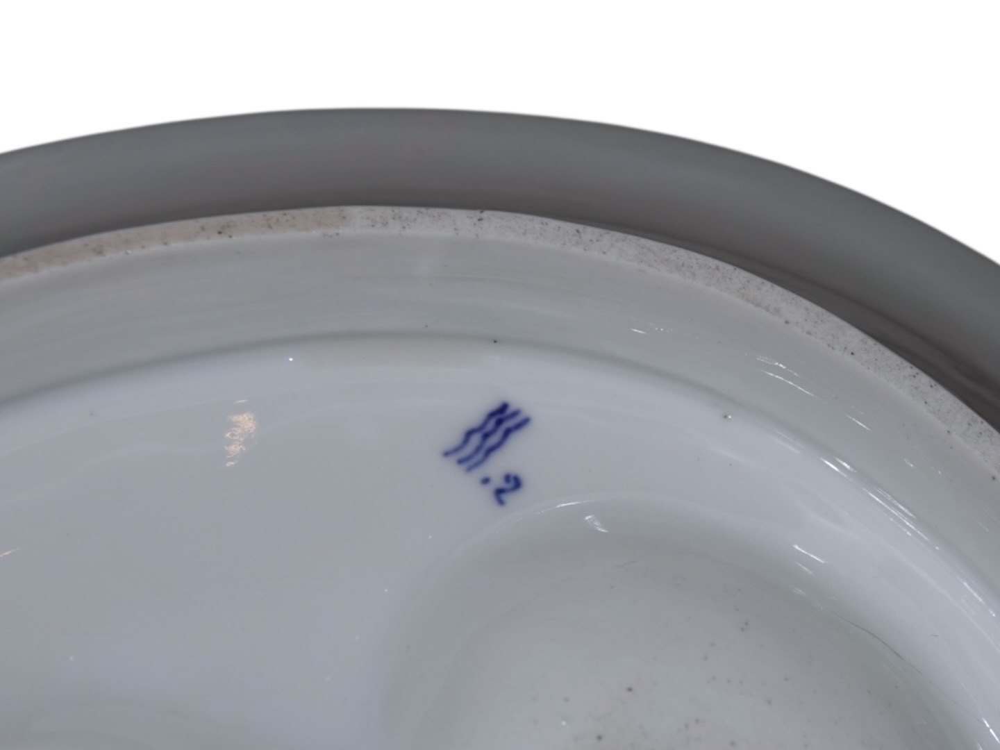 Royal Copenhagen Musselmalet Riflet, stort og sjældent fad til en steg, hvor kødsafterne kan løbe ned i fordybningerne.