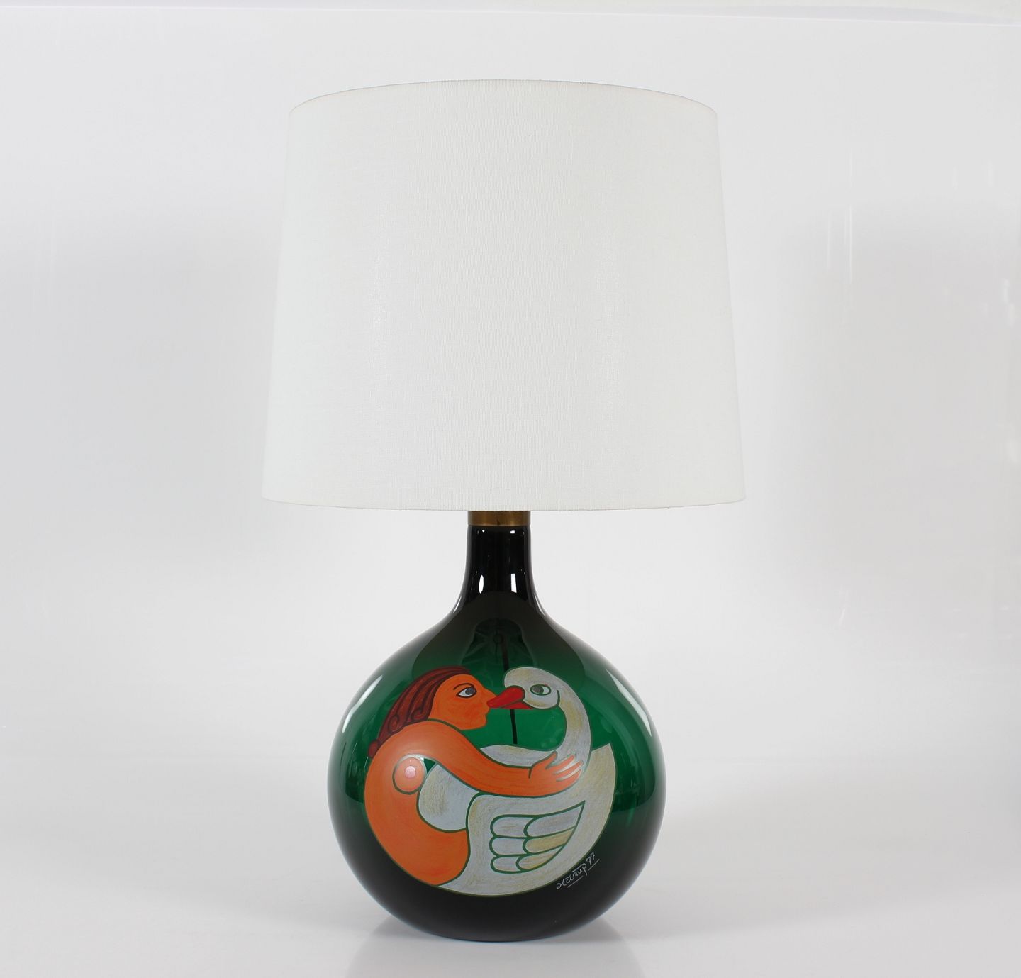 Stor kugleformet lampefod med Leda og Svanen