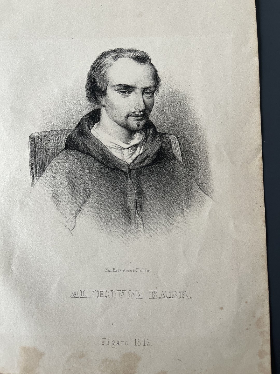 Litografi af Em. Bærentzen - Portræt af den franske forfatter Jean-Baptiste Alphonse Karr.
