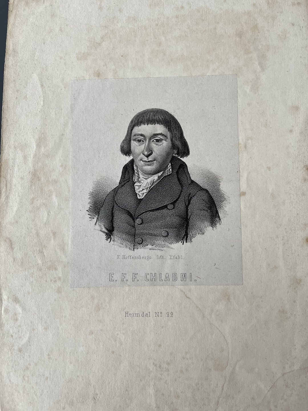 Litografi af Frantz Hoffensberg - Portræt af den tyske fysiker og musiker E.F.F. Chladni.