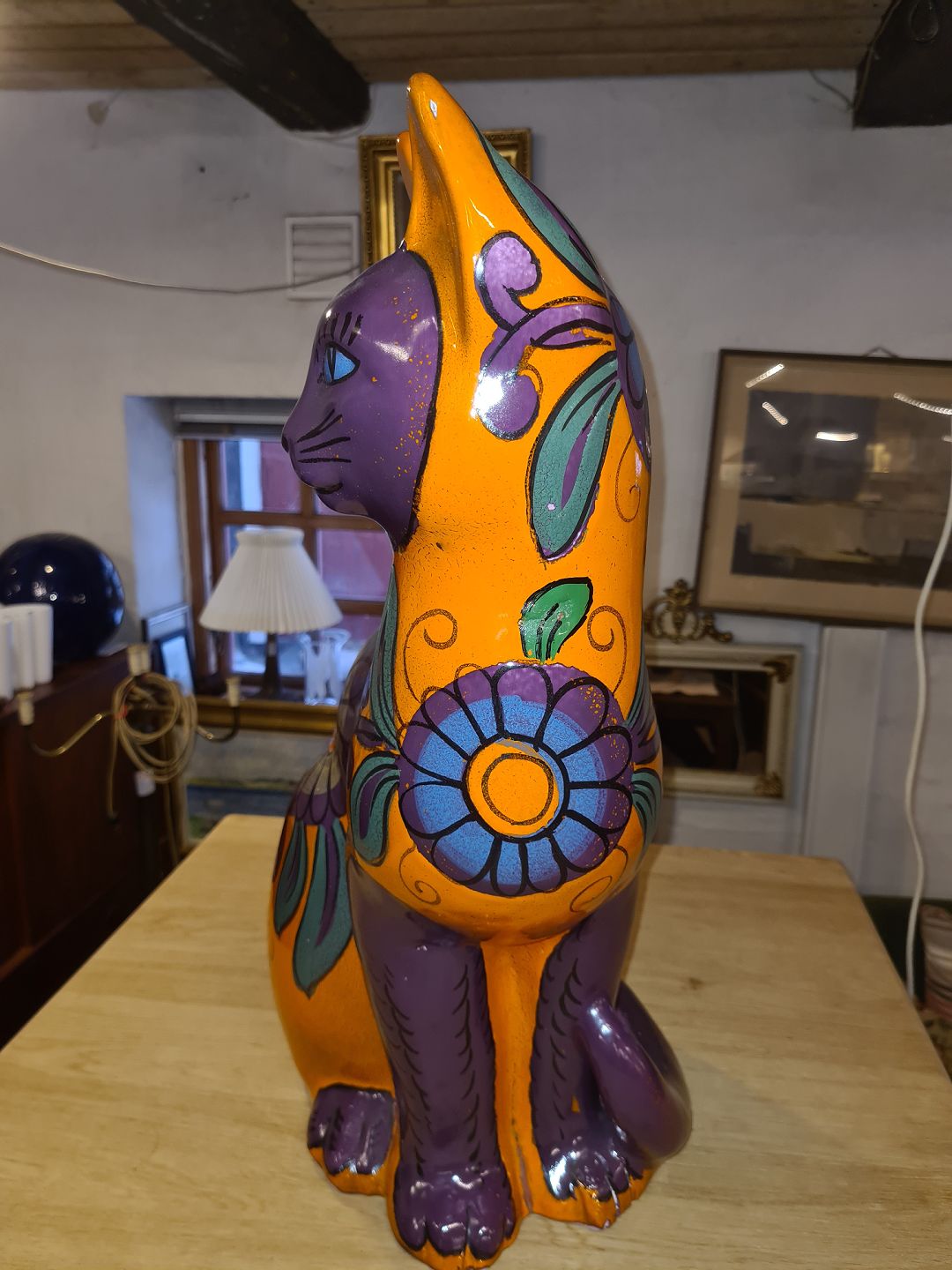 Mario Bellini figur af siddende kat. Udført i glaseret fajance i Italien ca. 1960'erne.