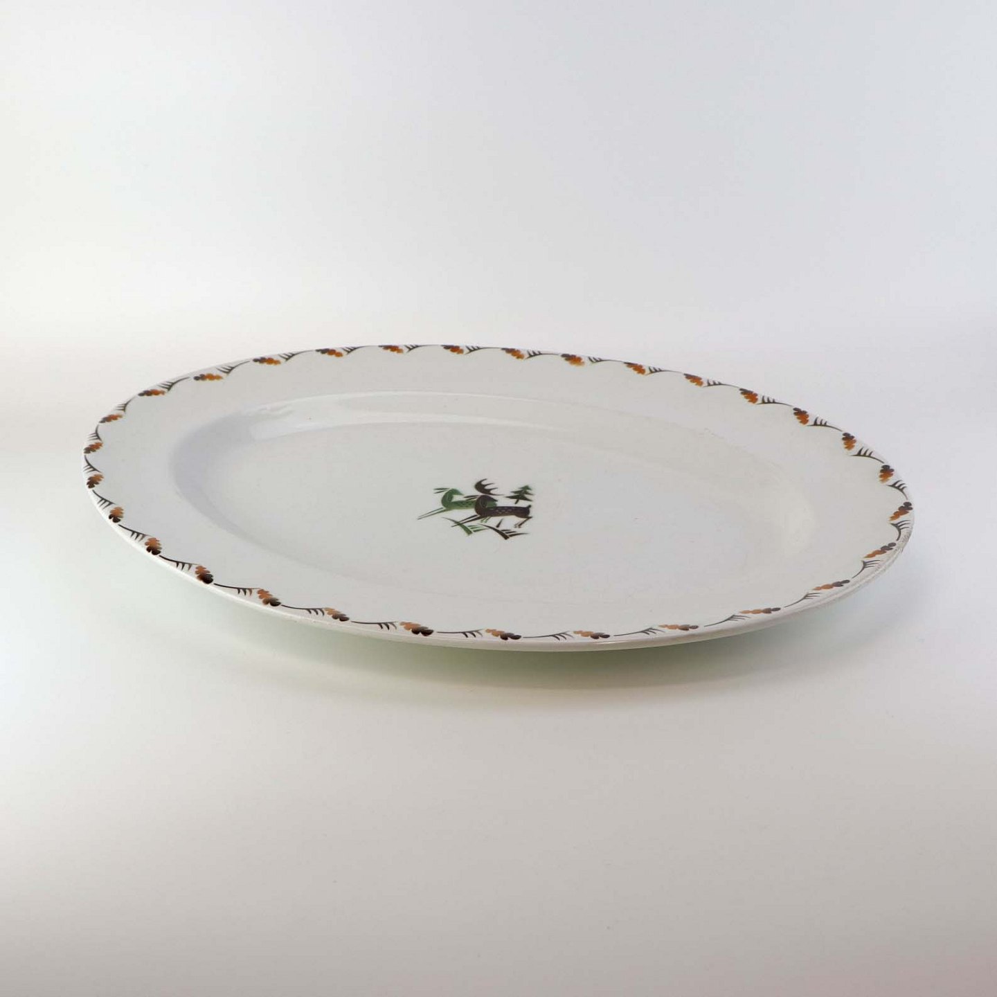 Stort ovalt fad i fajance fra Hjortestellet Convolvolus, som blev fremstillet i perioden 1930-1940
