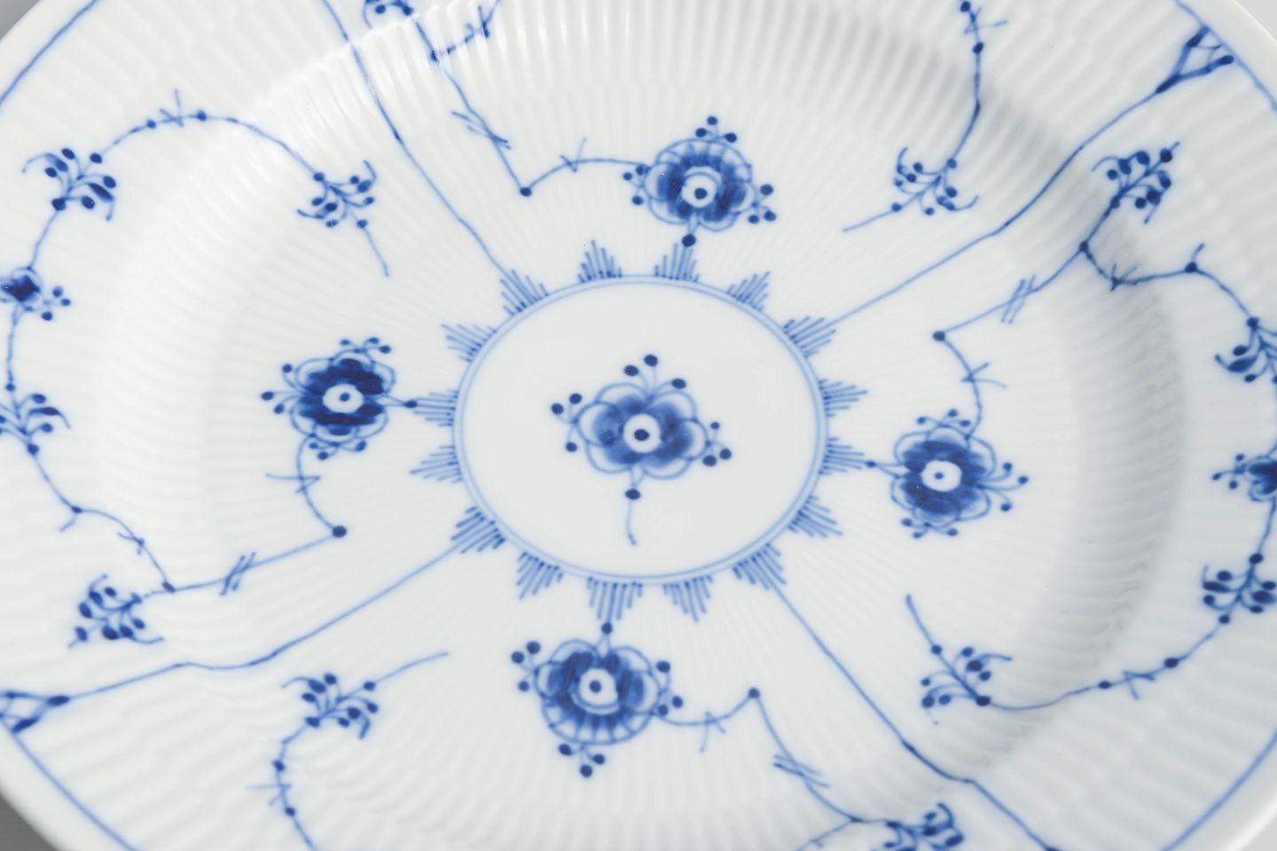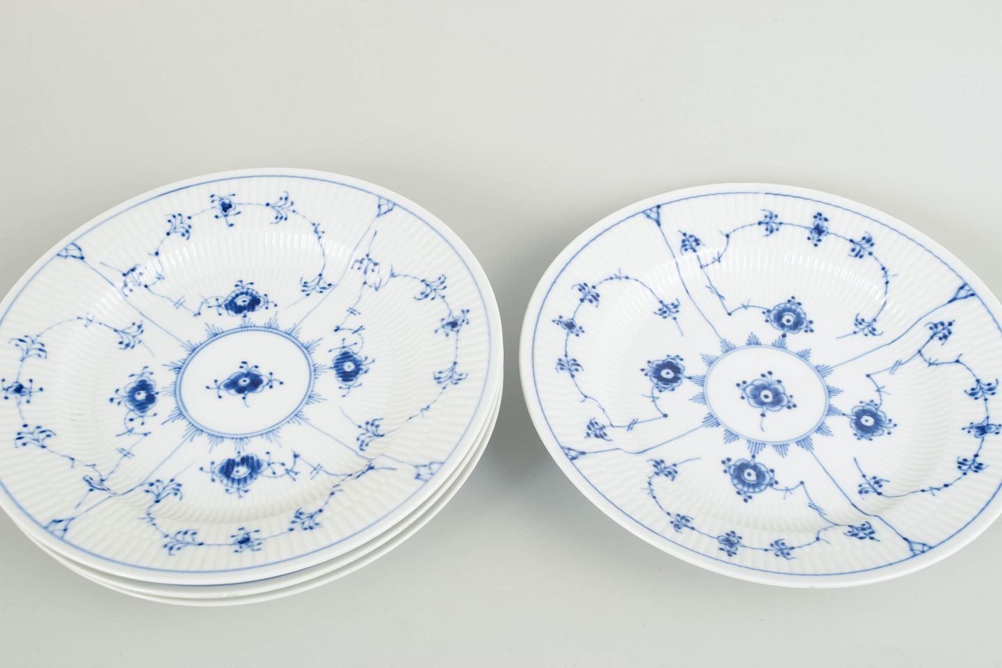 Royal Copenhagen, Musselmalet riflet, sæt på 4 middagstallerkener.