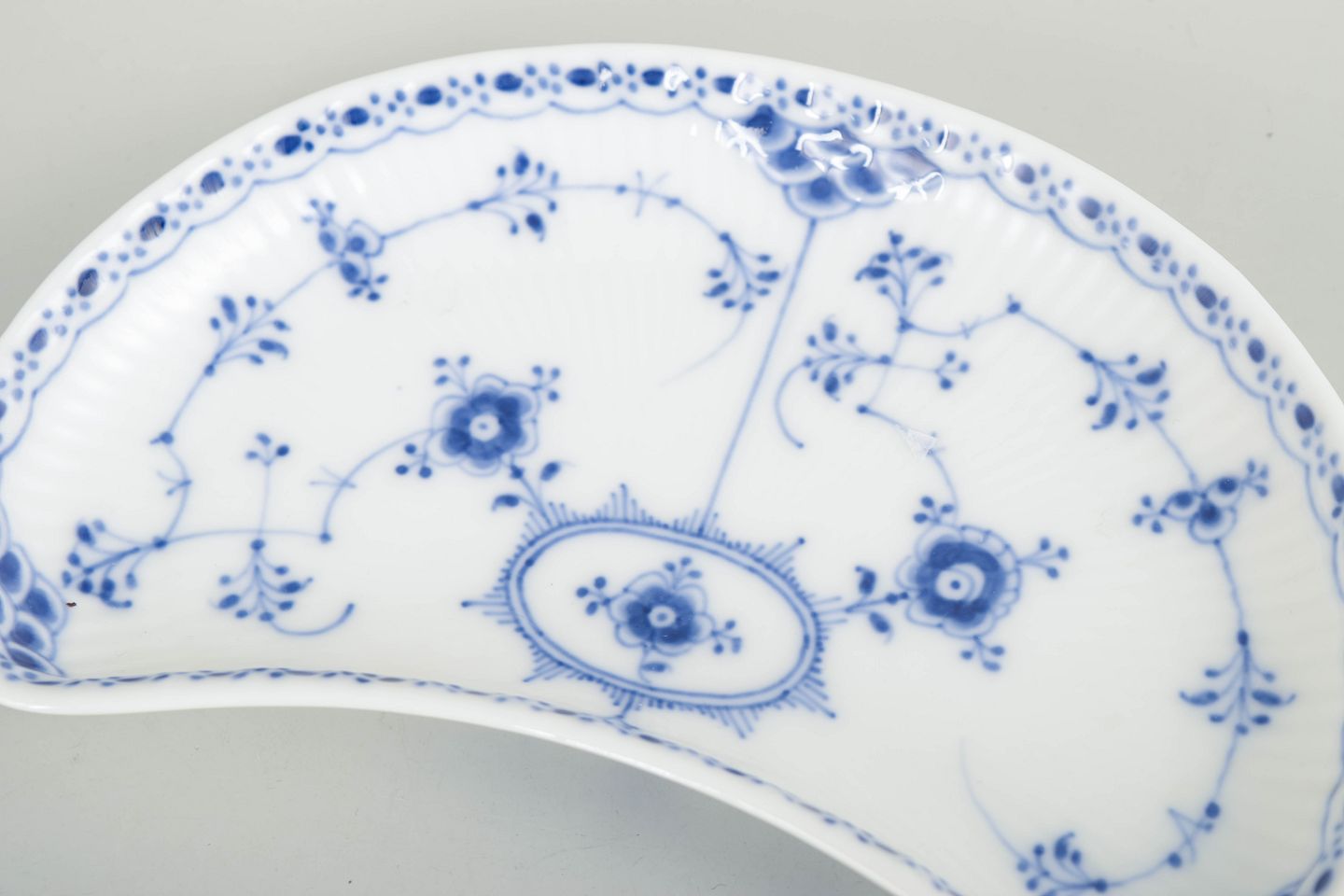Royal Copenhagen Blue Fluted Half Lace, crescent-shaped dish.