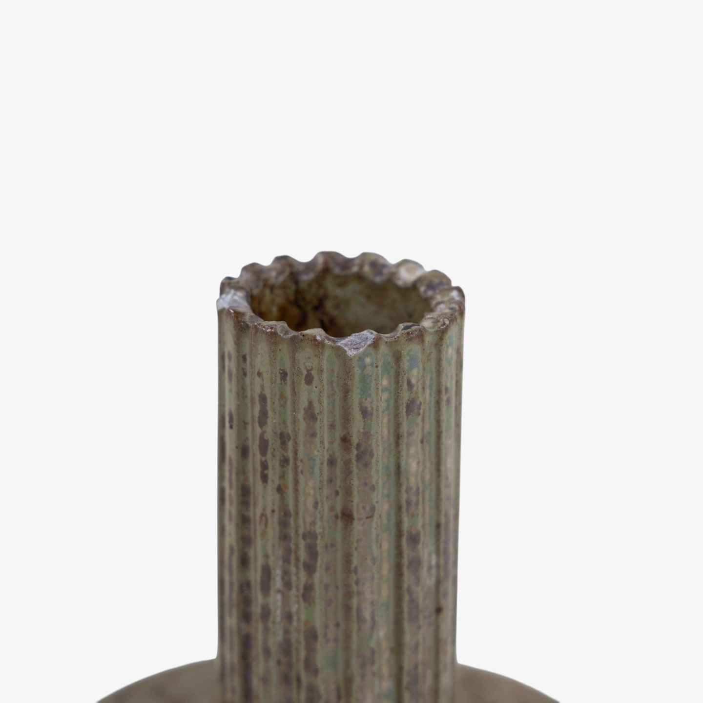 Model AB 133 - Lysestage i riflet stentøj med grøn/brun glasur. Signeret.