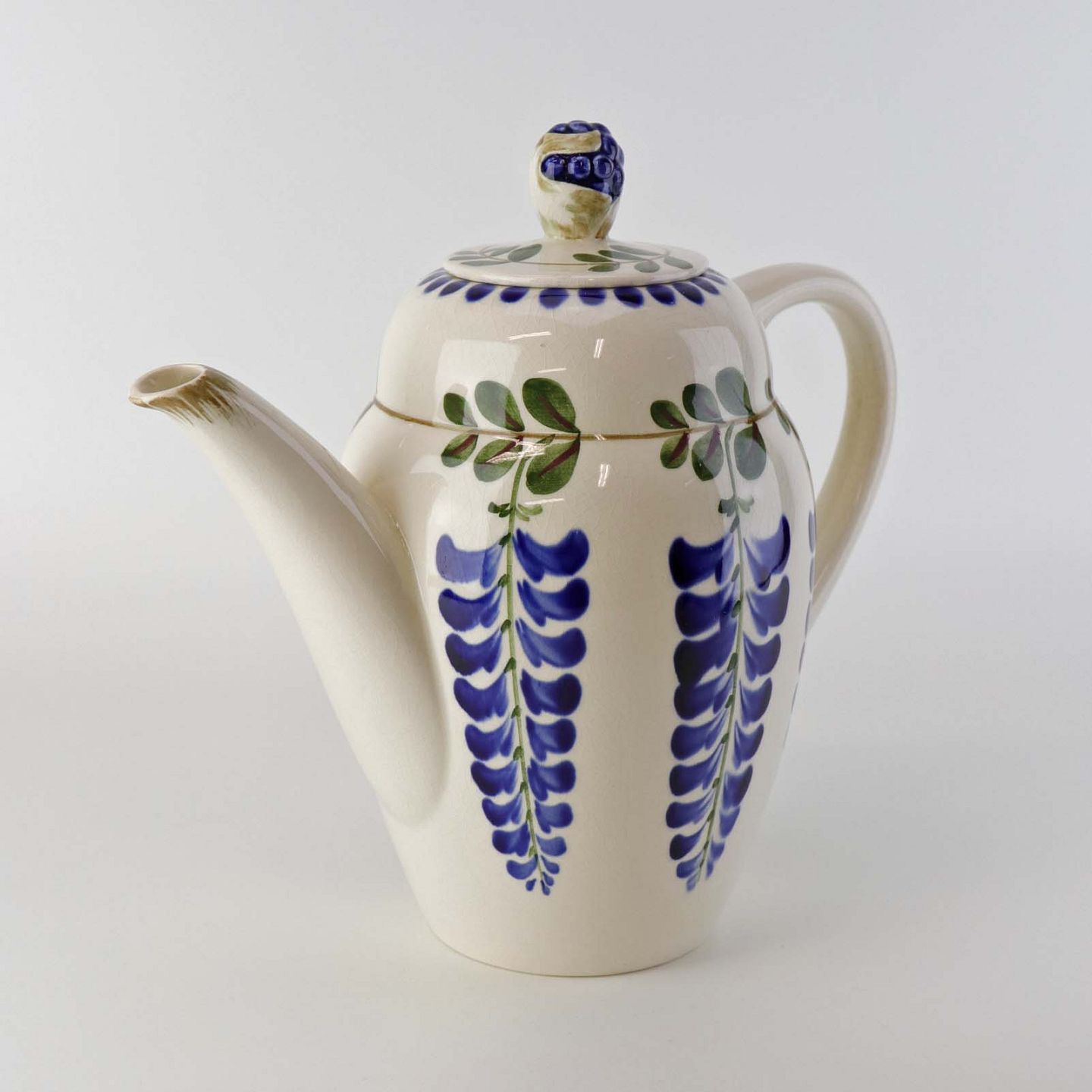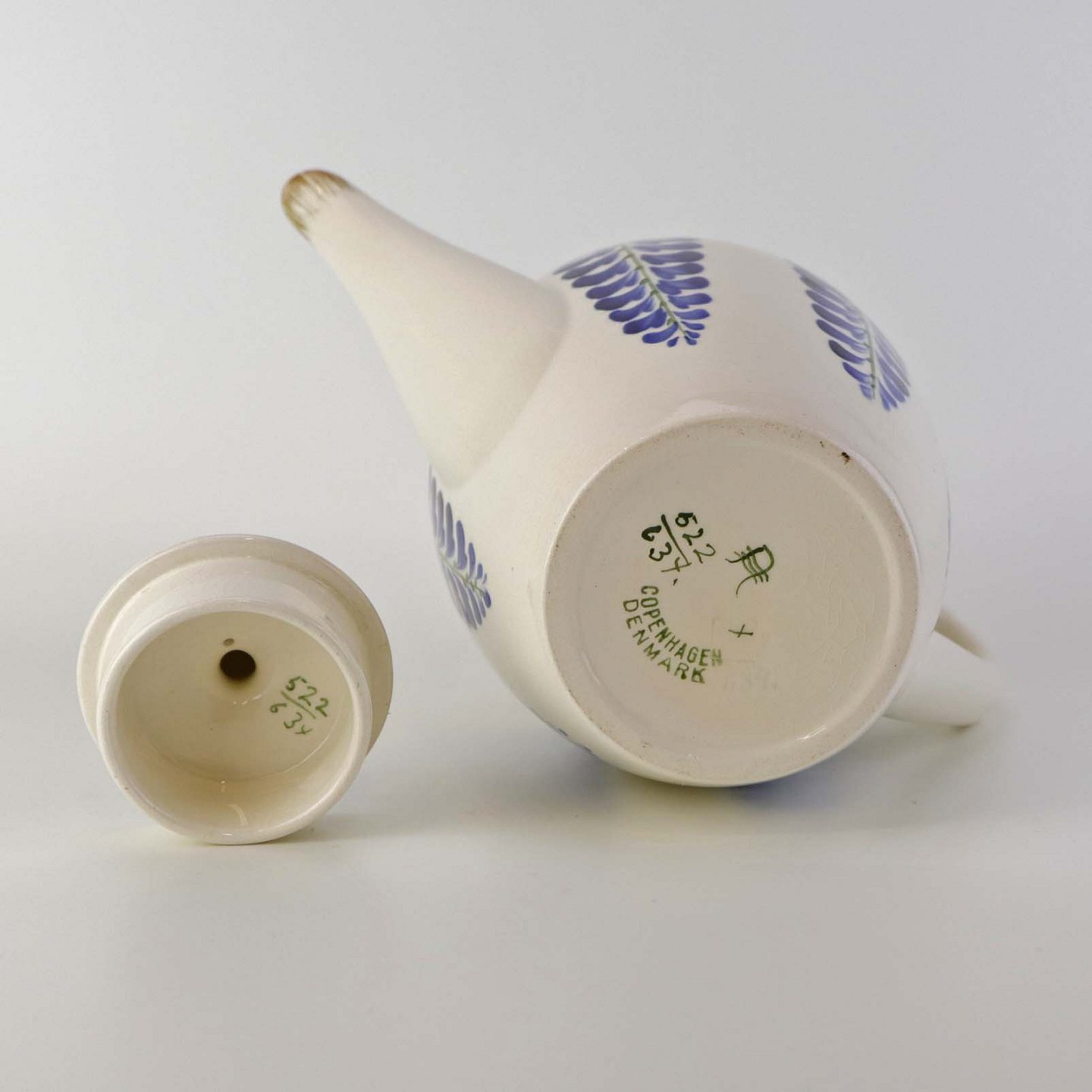 Kande til kaffe i fajance fra stellet Blåregn. Stellet er fremstillet i perioden år 1903-1933. Nr. 522/634