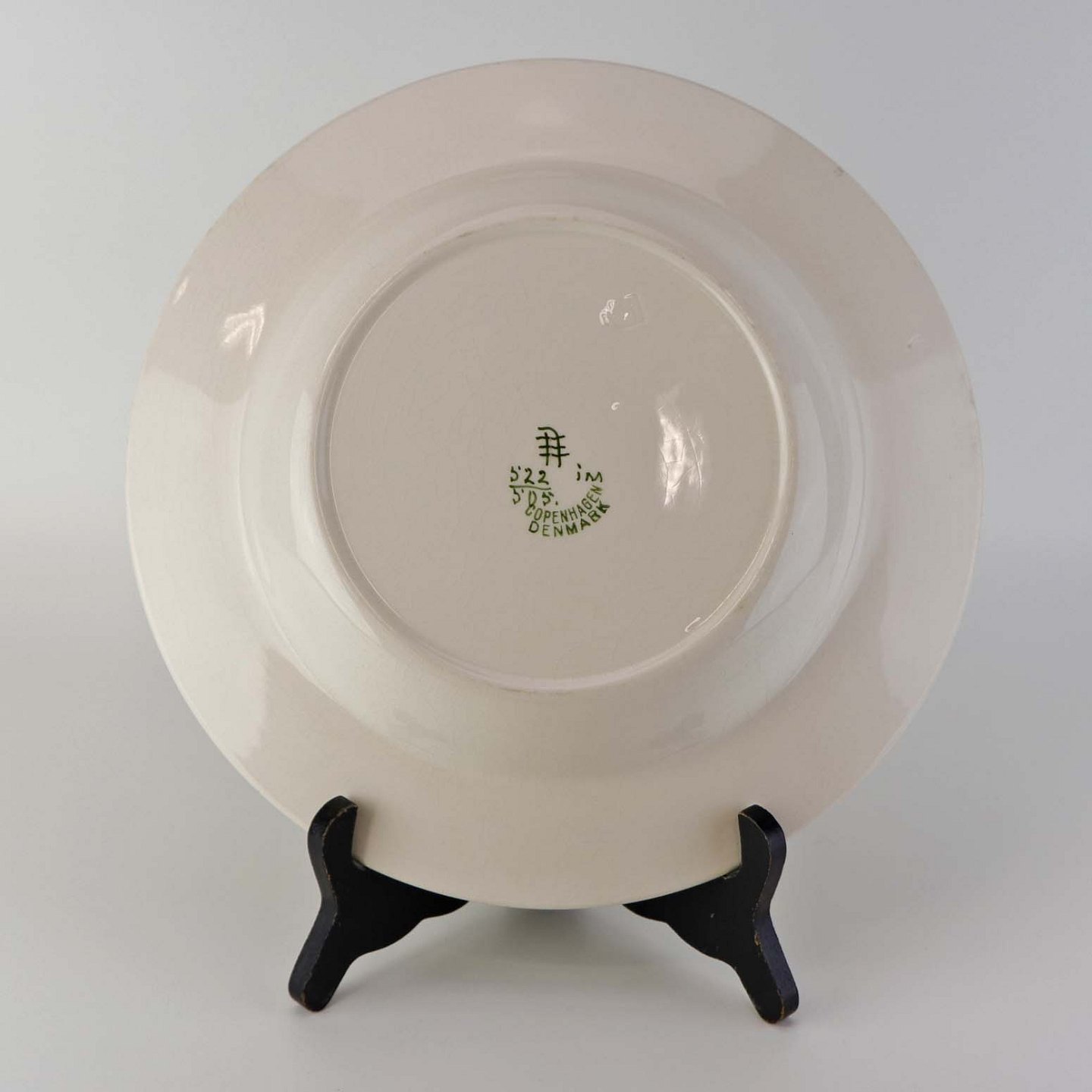 Fremstår med krakkeleringer i glasuren, nister og ujævnheder i dekorationen.