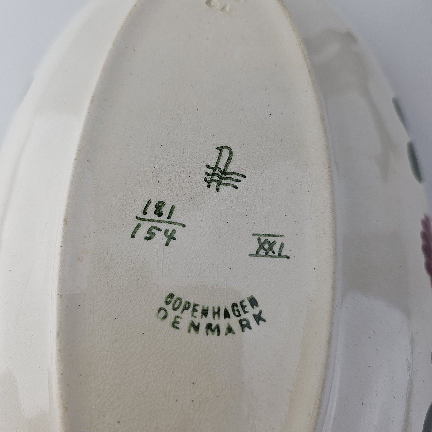 Lågfad i kunstfajance fra stellet Kløver. Nr. 181/154