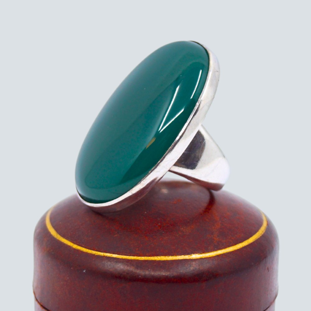 Georg Jensen; Ring af sterling sølv prydet med stor oval grøn agat.