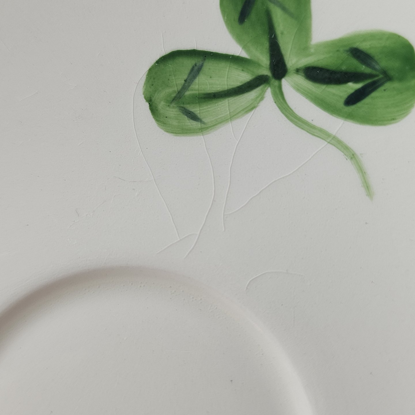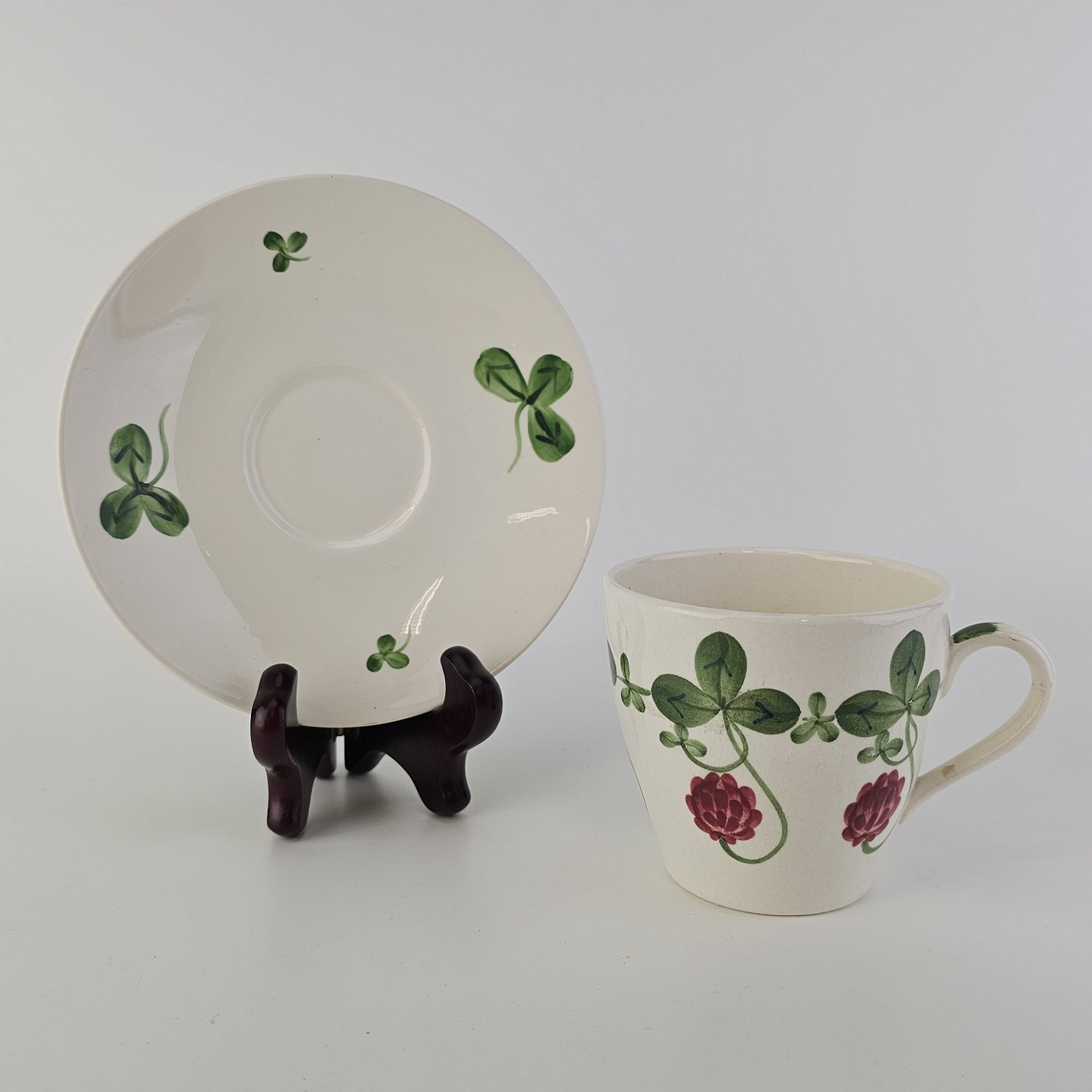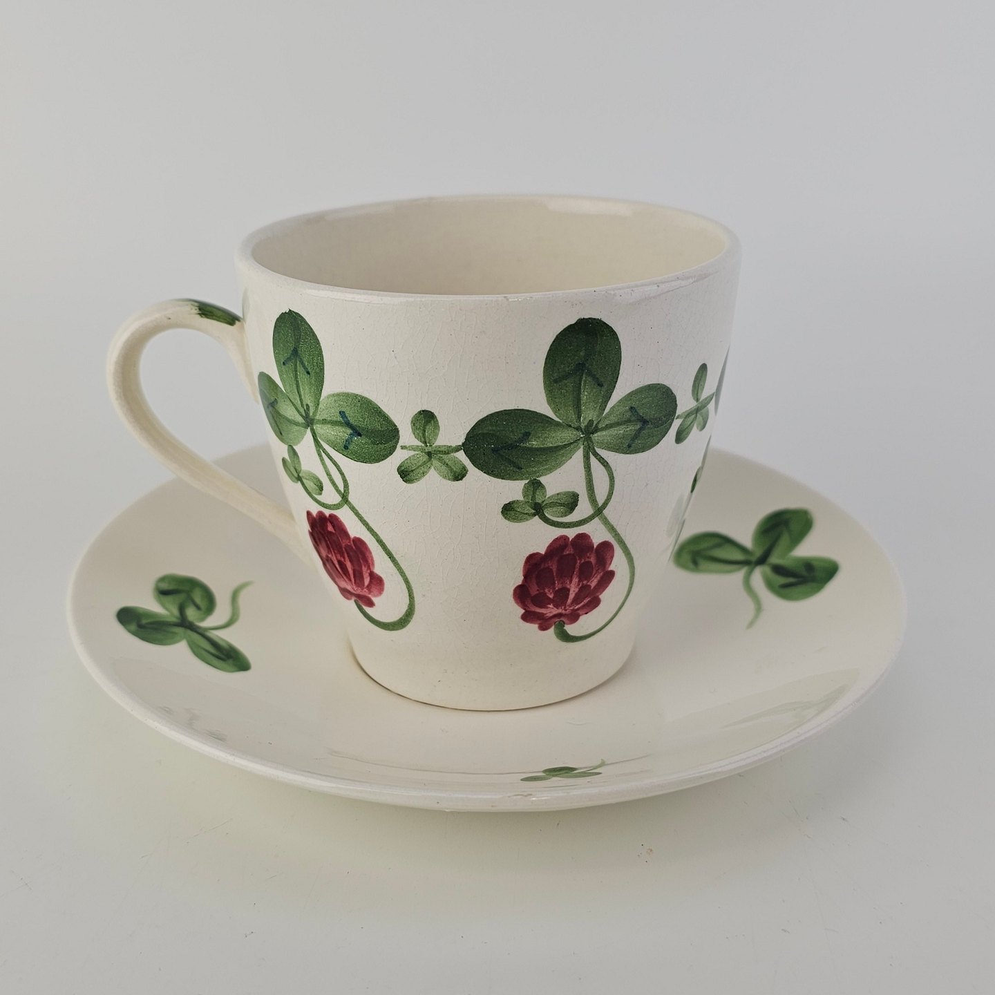 Kløver er fajancestel med motiv af rødkløver på lys baggrund.