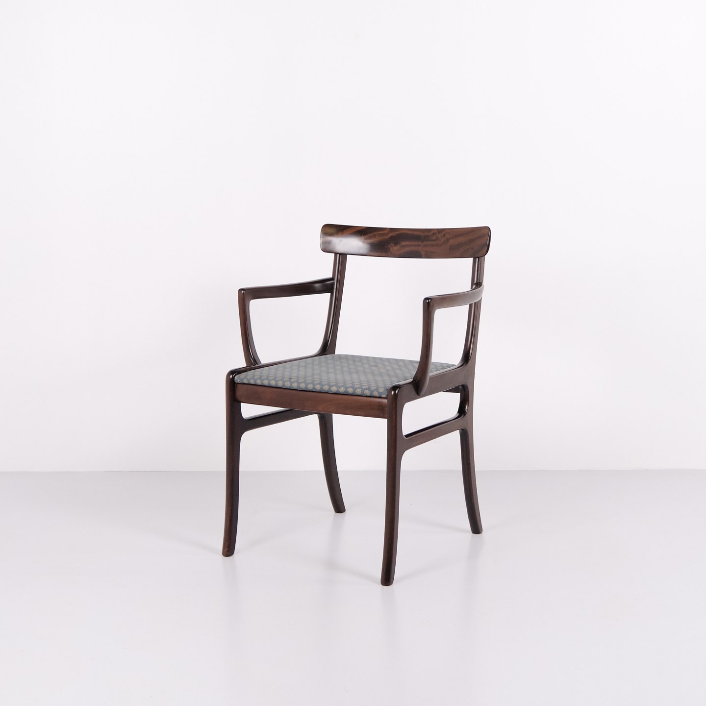 Armstol fra serien Rungstedlund formgivet af Ole Wanscher og produceret hos Poul Jeppesen Møbelfabrik i Danmark i 1950’erne. Stolen er udført i et klassisk og velafbalanceret formsprog, hvor proportioner og snedkerarbejde afspejler den danske designtradition fra midten af det 20. århundrede.