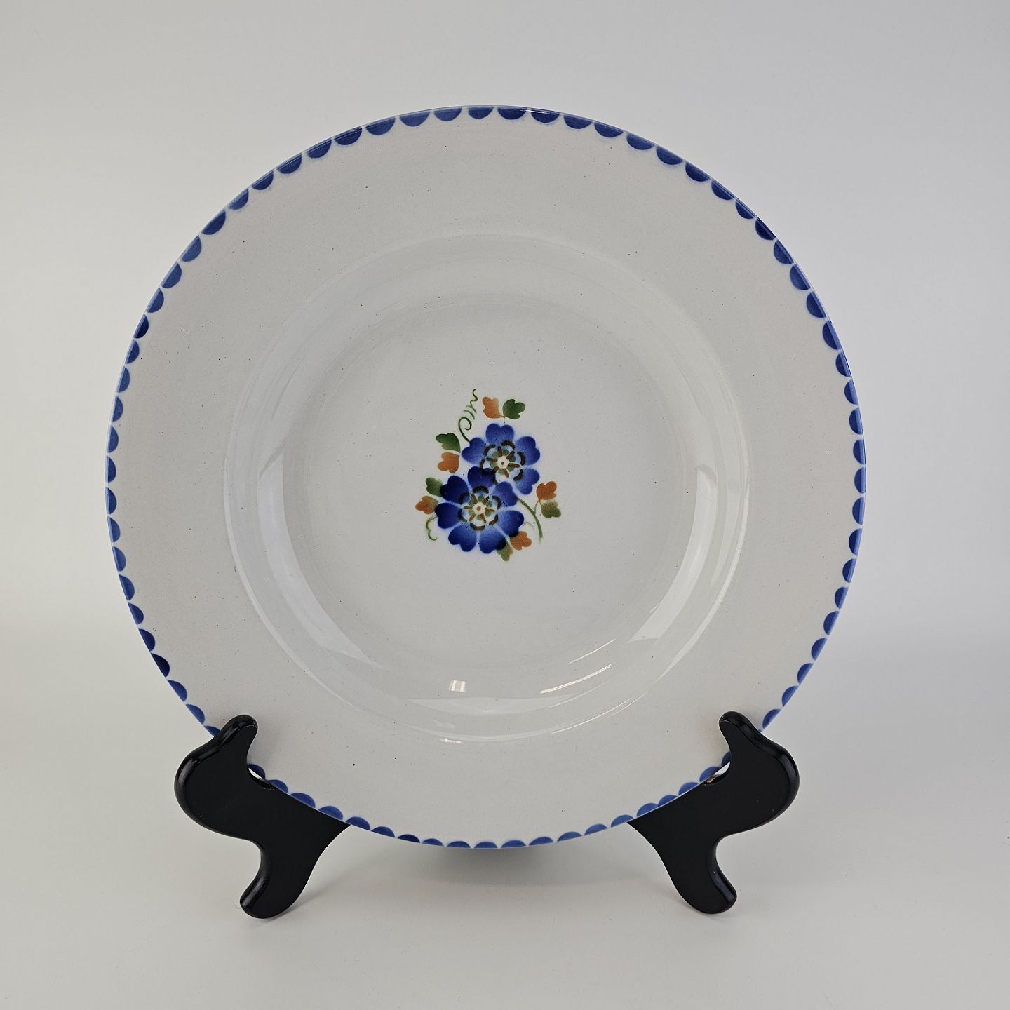 Dyb tallerken i fajance fra stellet Geranium II fremstillet i perioden 1927-1940.