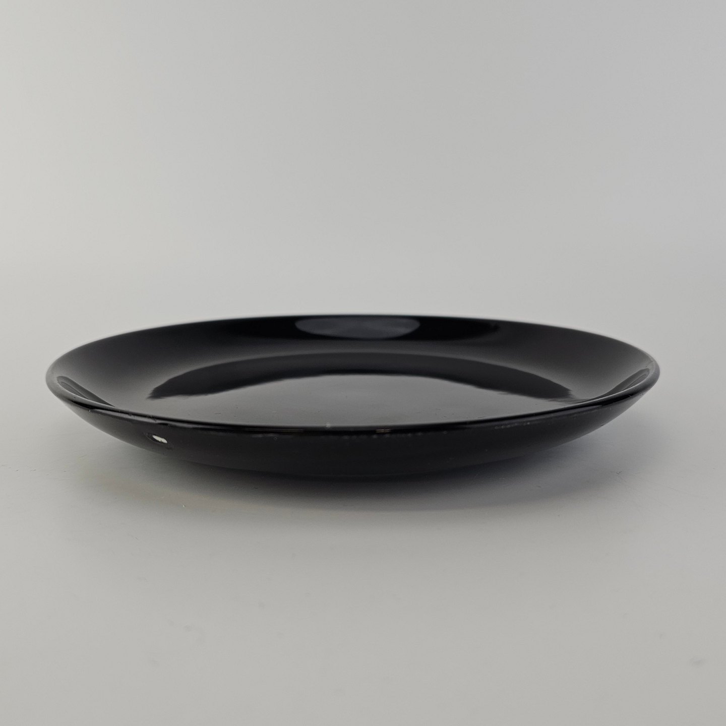 Fremstår med to mærker på bagsiden, som er holdemærker fra glaseringsprocessen