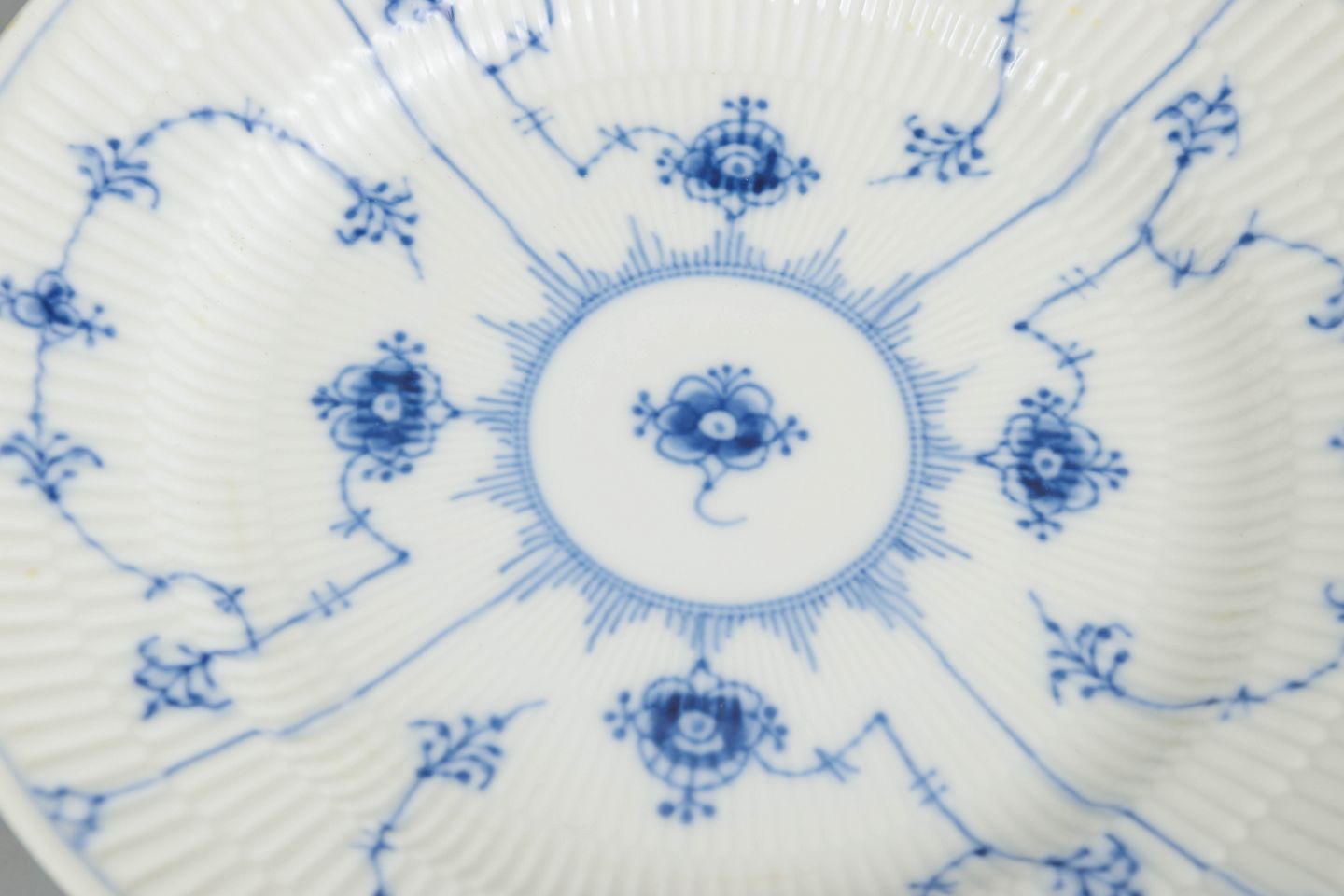Royal Copenhagen blev grundlagt i 1775 i København under kongelig bevilling. Fabrikken er internationalt anerkendt for sit håndmalede porcelæn og sit høje kunstneriske niveau. Musselmalet Riflet er fabrikkens mest klassiske stel, introduceret i slutningen af 1700-tallet og fortsat produceret med traditionelle håndværksmetoder.