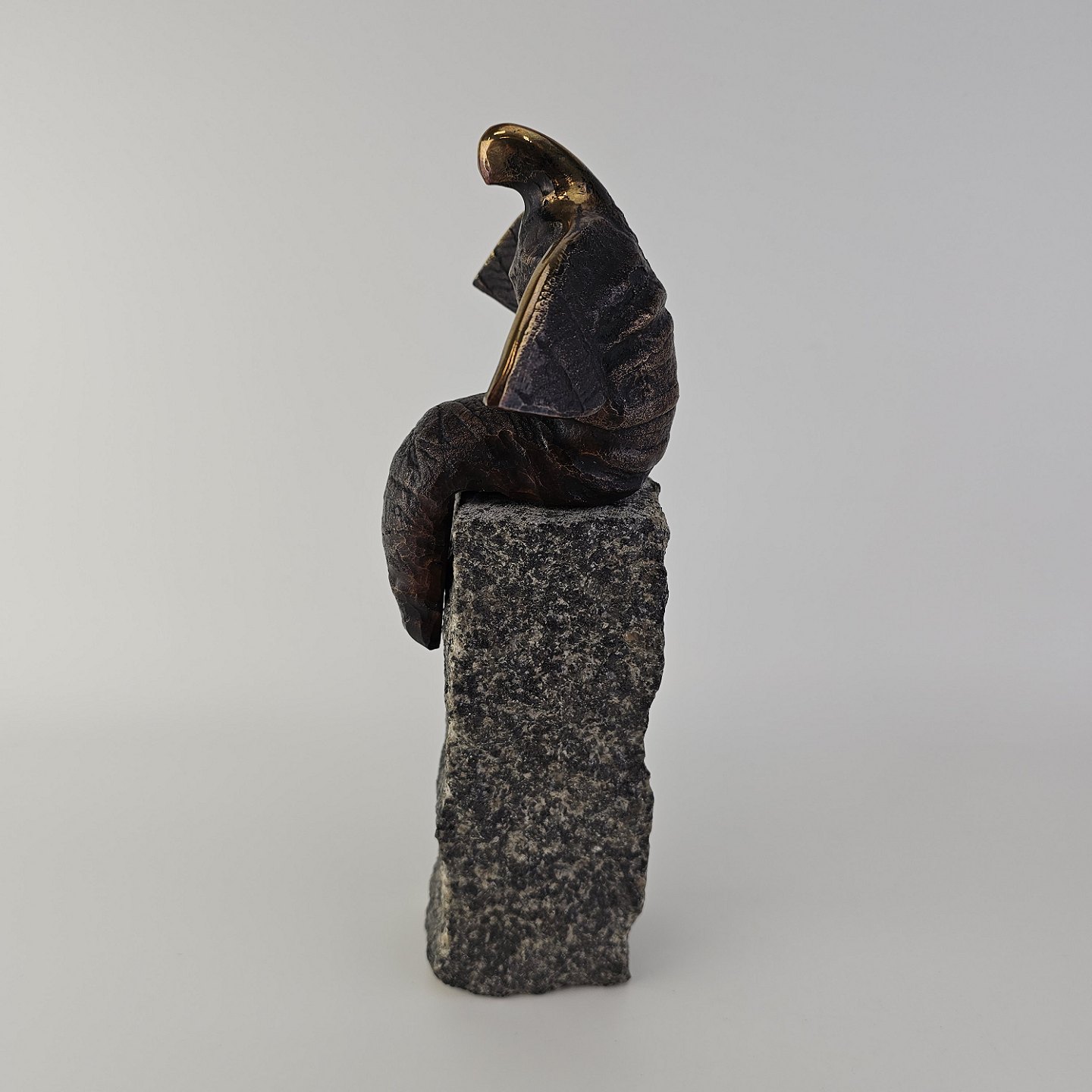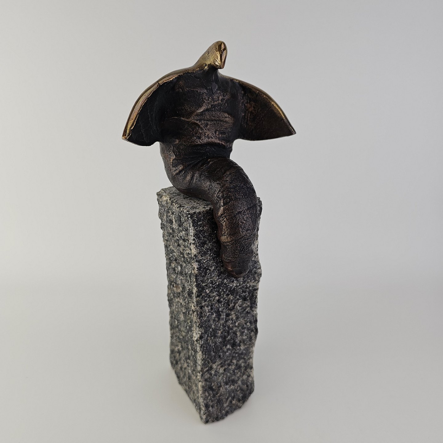 Figur af bronze på en granitsten