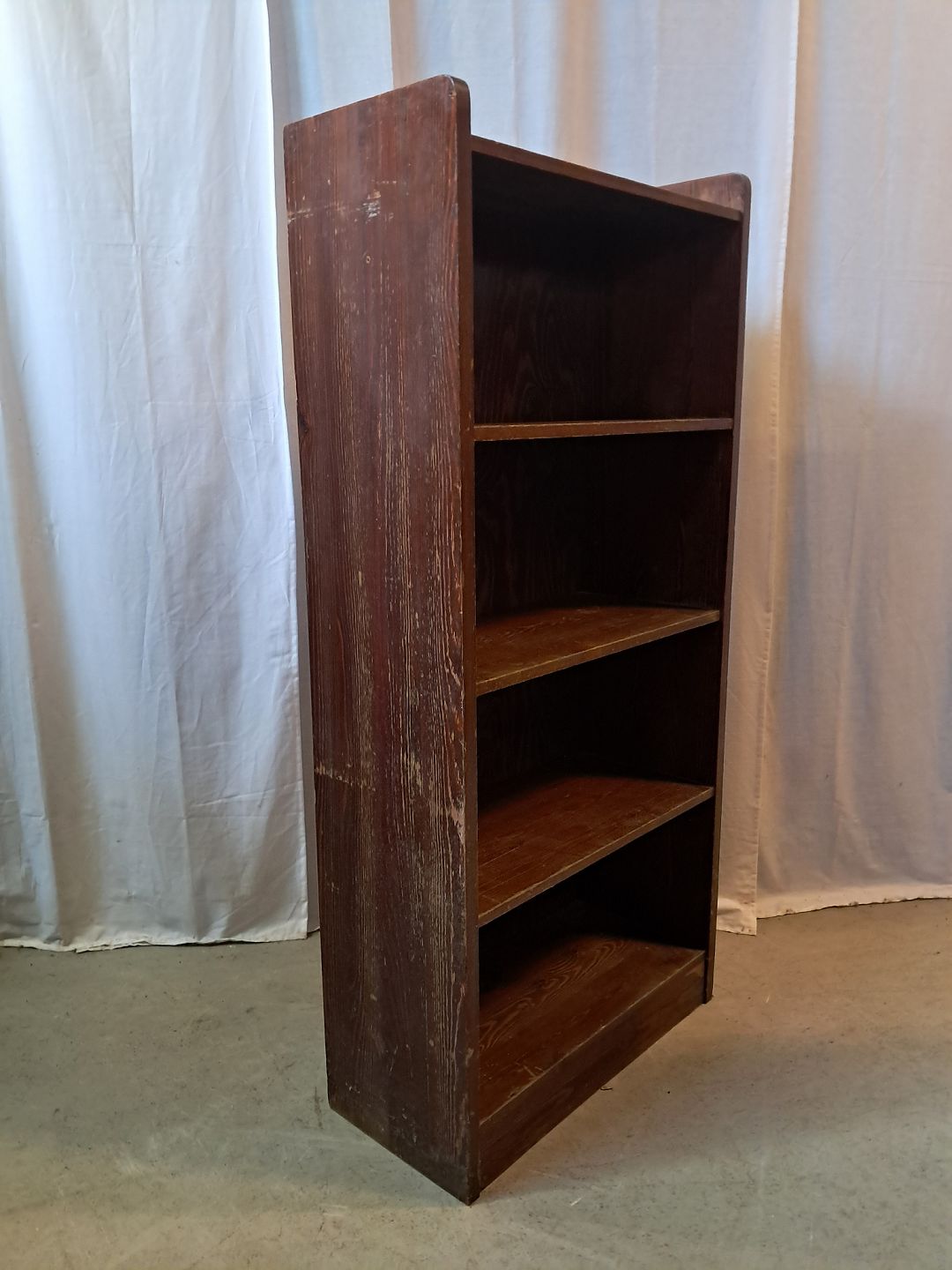 Reol i massivt bejdset og lakeret fyrretræ, fra 1950erne.