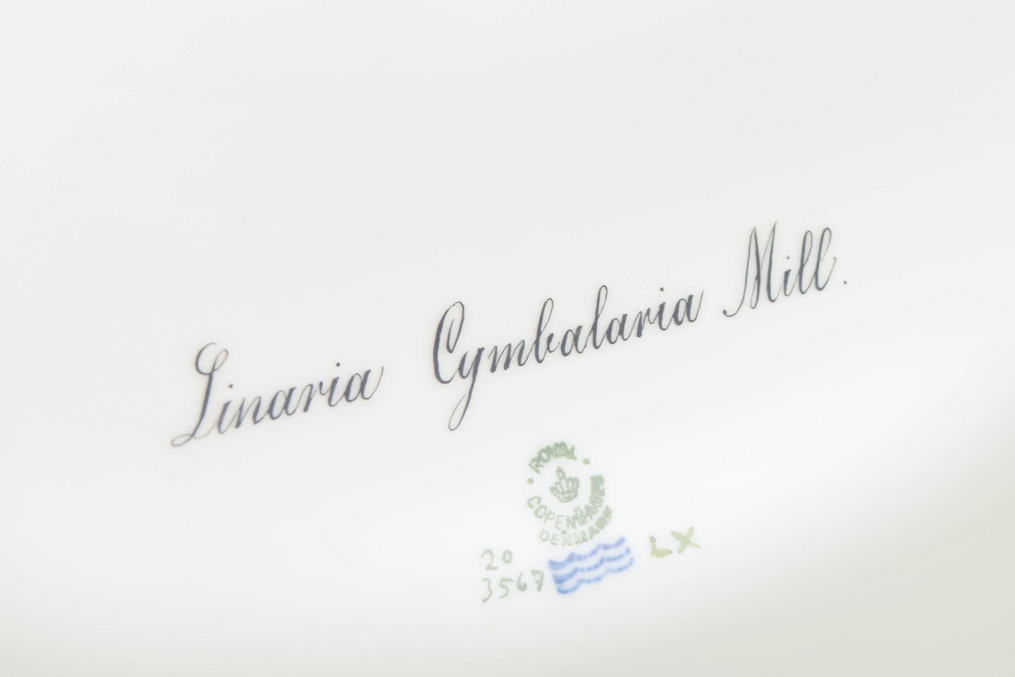 Imponerende og monumentalt udført lågfad i håndmalet porcelæn fra Flora Danica-serien, dekoreret med botanisk motivet Linaria Cymbalaria Mill., sirligt gengivet med videnskabelig præcision og forfinet penselføring. Låget er rigt udsmykket med naturalistiske blomster og slyngende ranker, afsluttet med relief modelleret knop med blomsterdekoration. Foden og randen er dekoreret med forgyldte detaljer og klassisk kantornamentik. Model 20/3567.