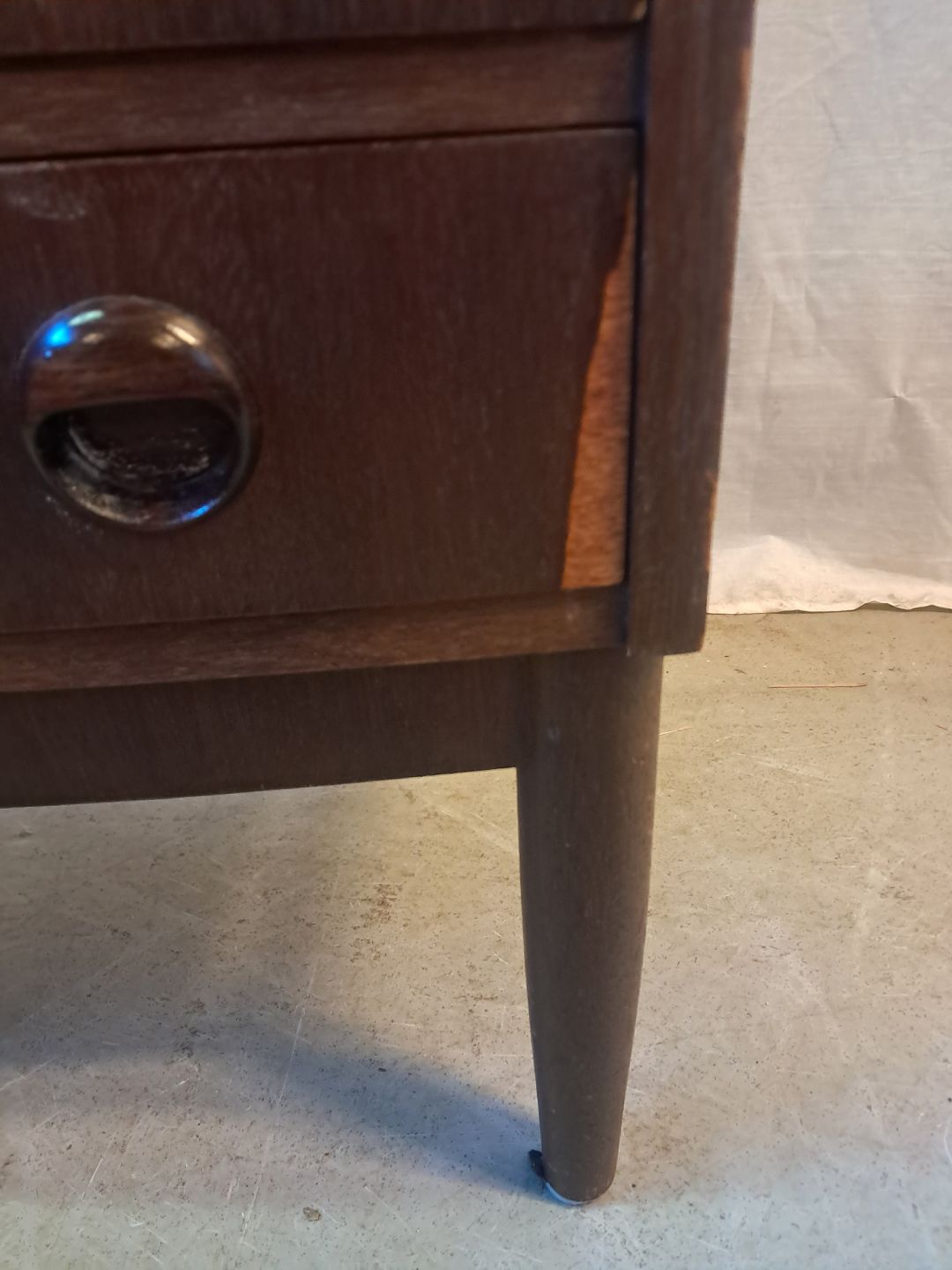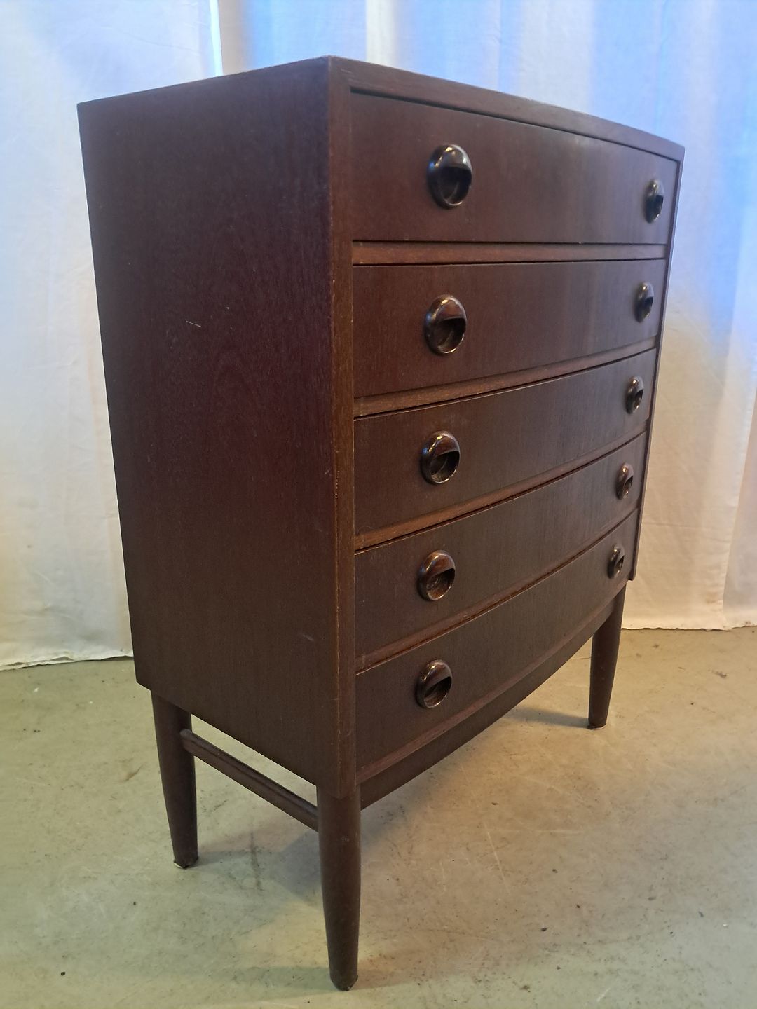 Kommode i bejdset fineret rgrtræ, fra 1960erne.