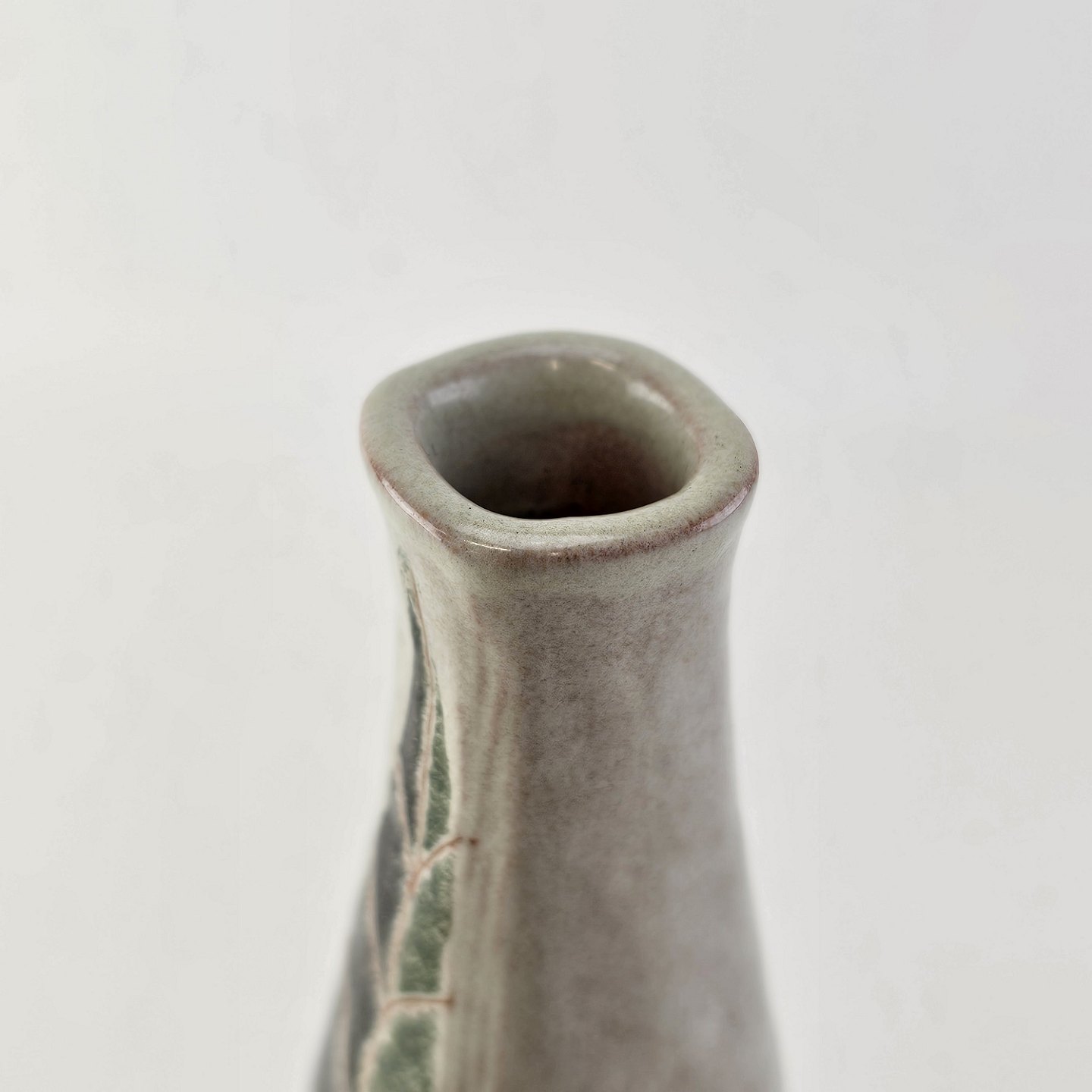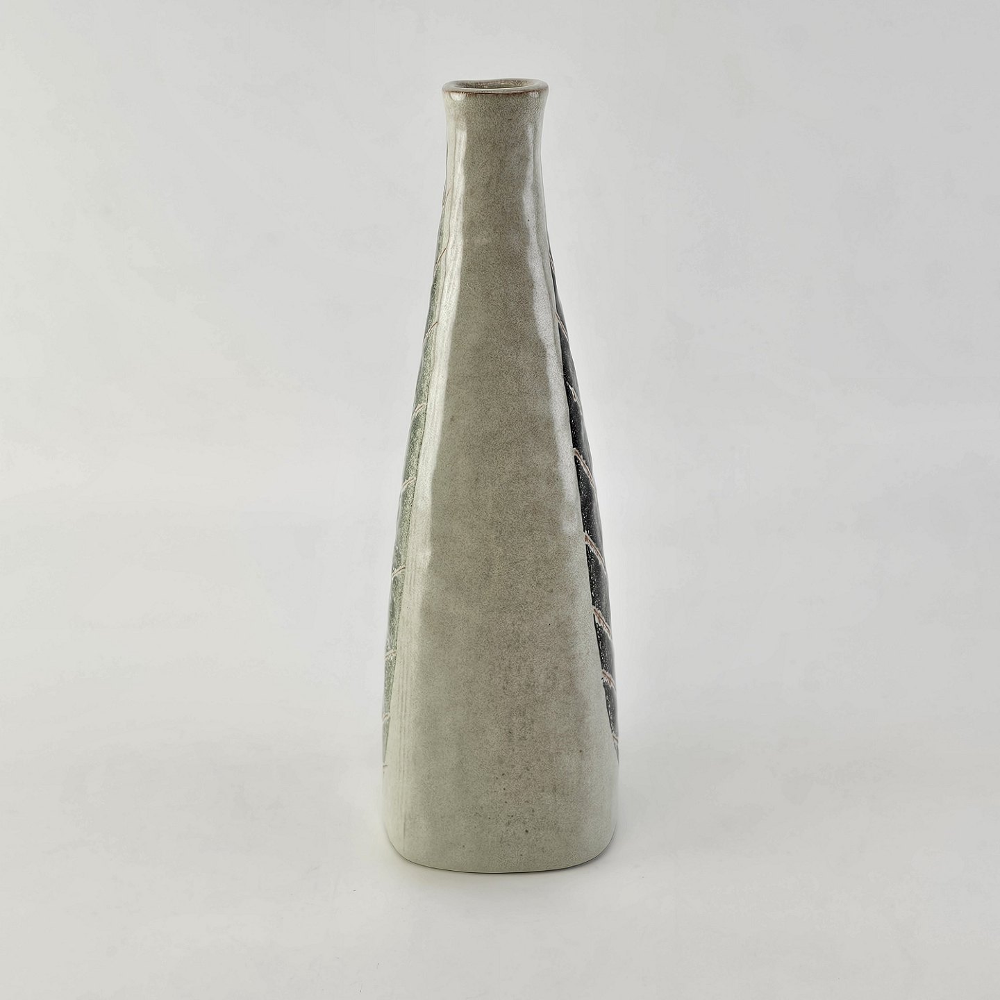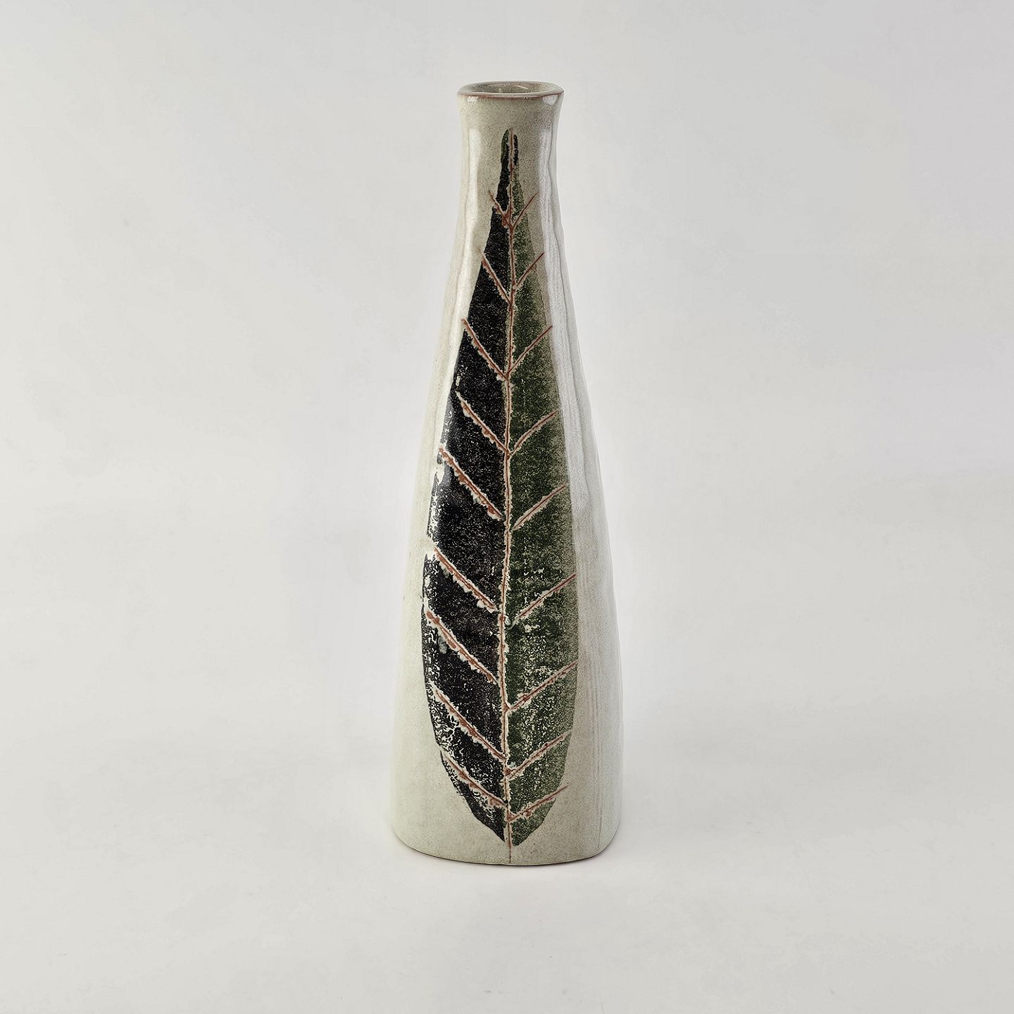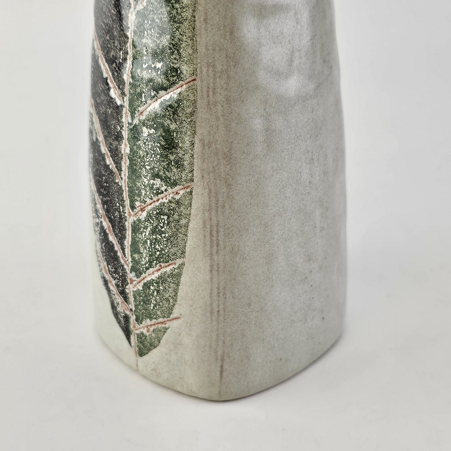 Firkantet vase i keramik med bladmotiv