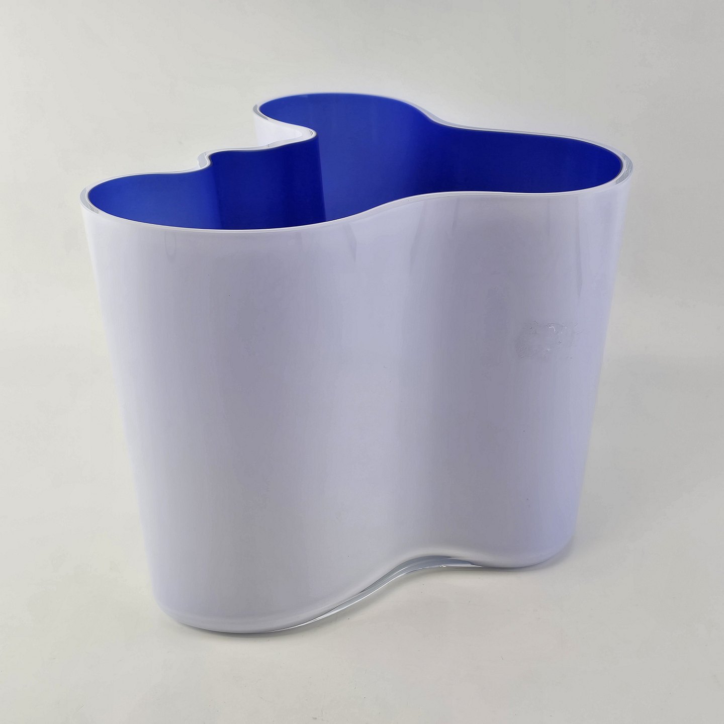 Savoy vase af glas, som er hvid på ydersiden og blå på indersiden
