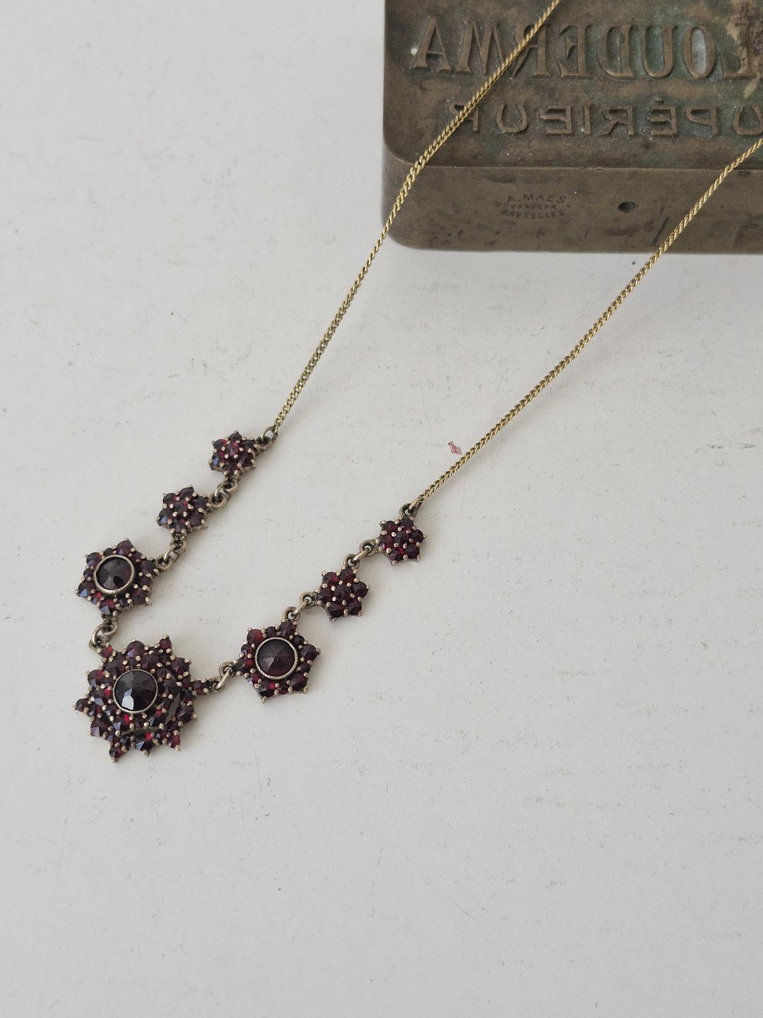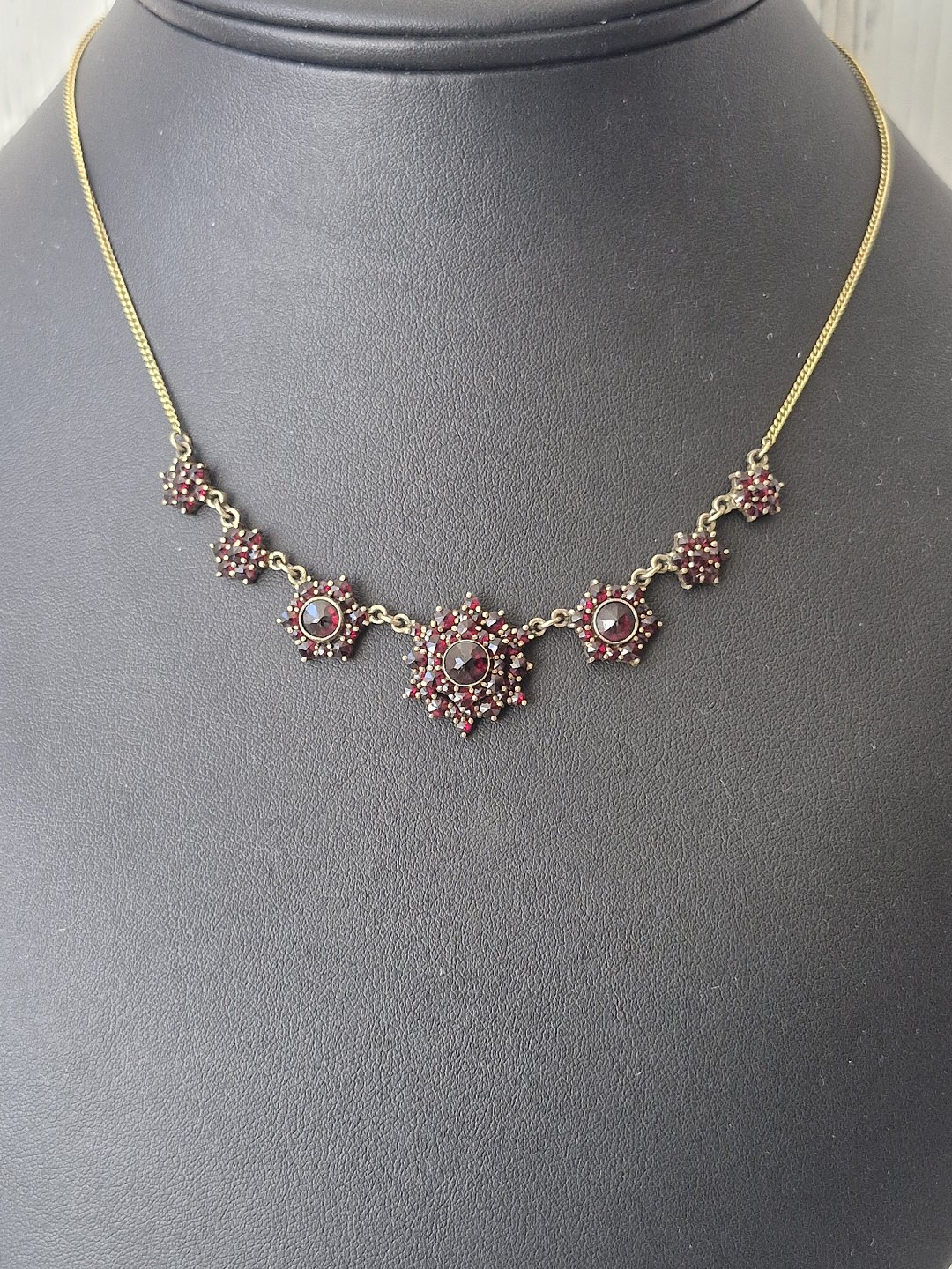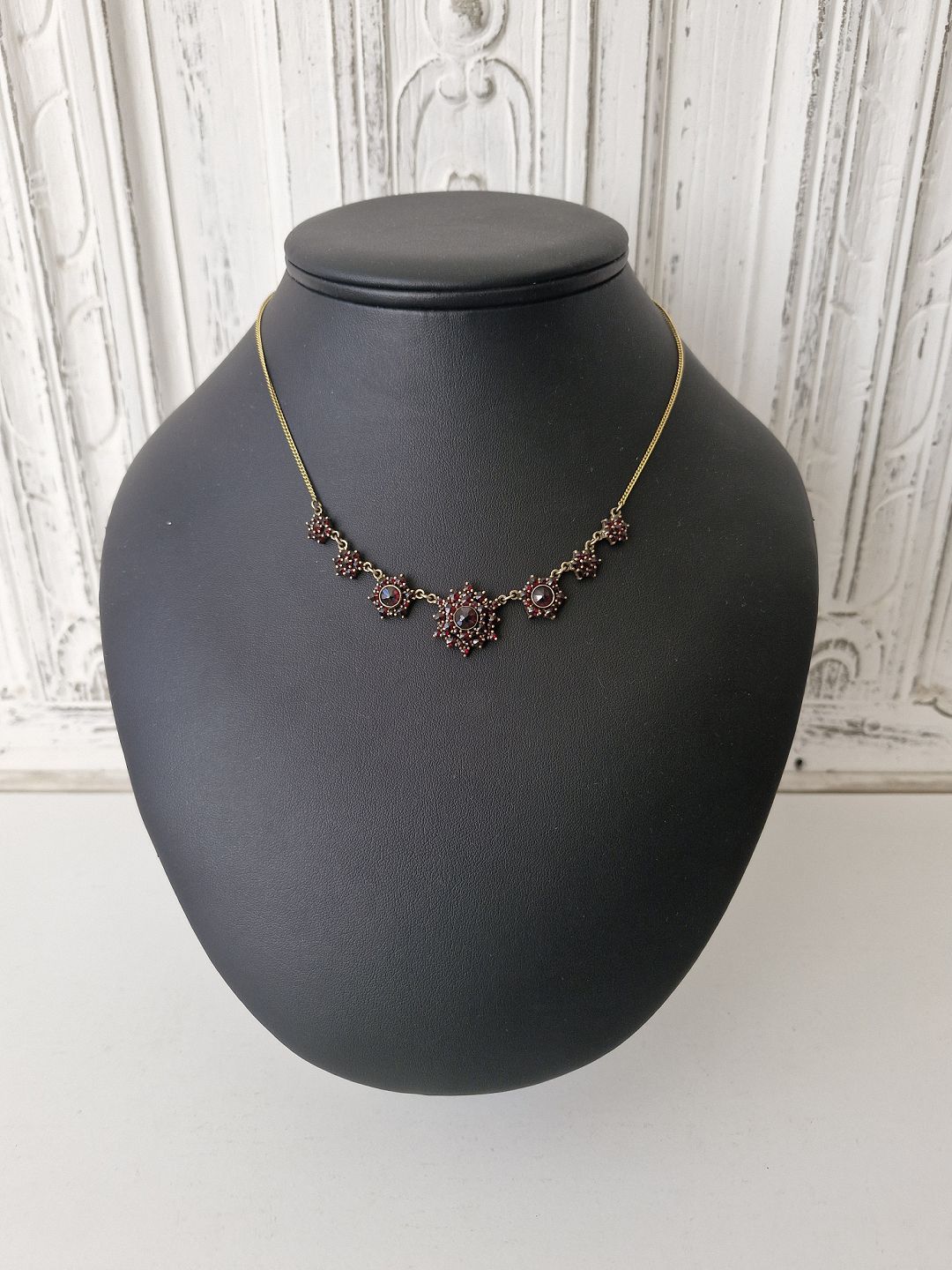 Vintage granat collier af forgyldt metal