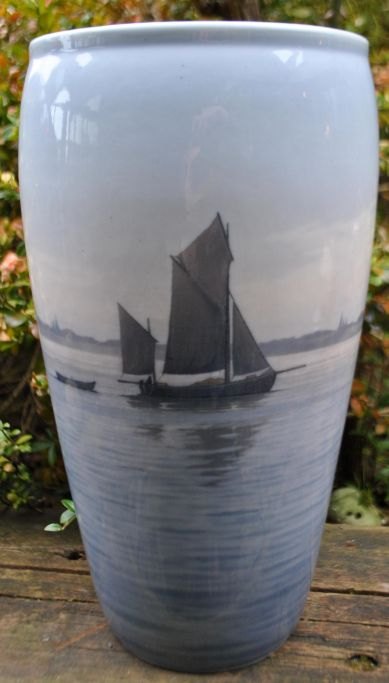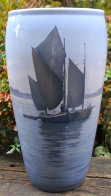 Royal Copenhagen stor vase med sejlskibe, no. 2105/66, Danmark.