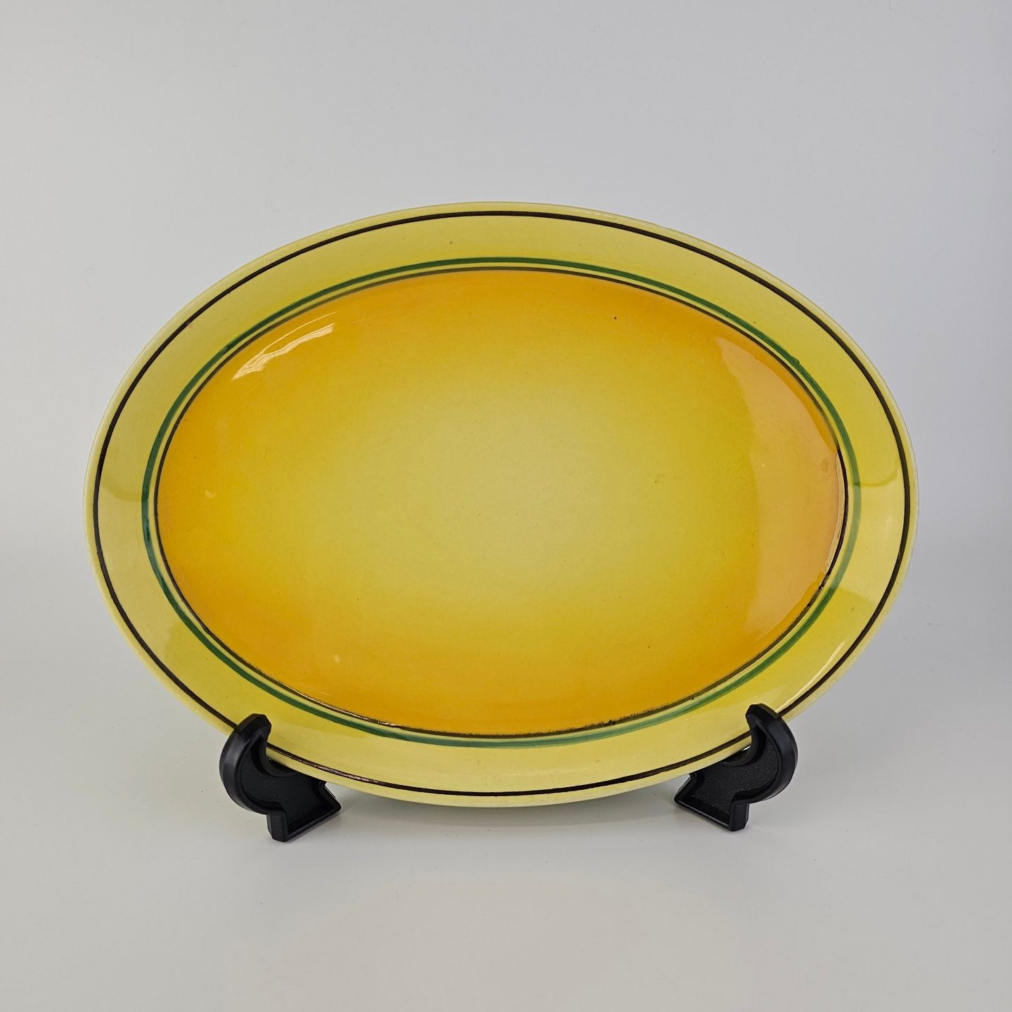 Ovalt fad i fajance fra stellet Gertrud fremstillet i perioden 1933-1939.
