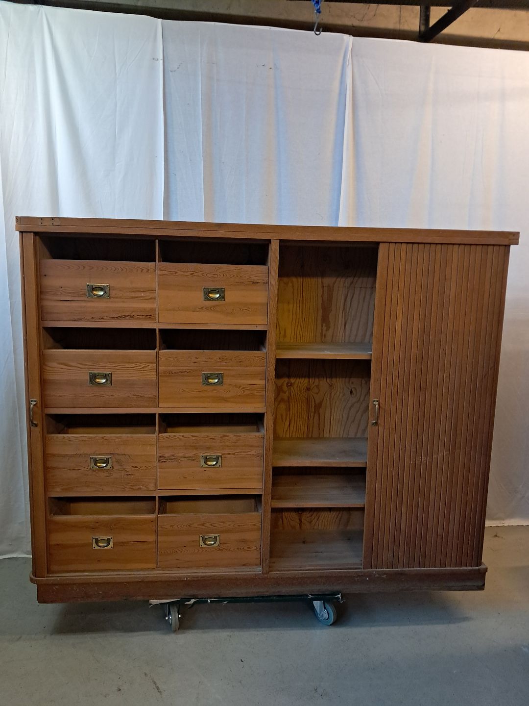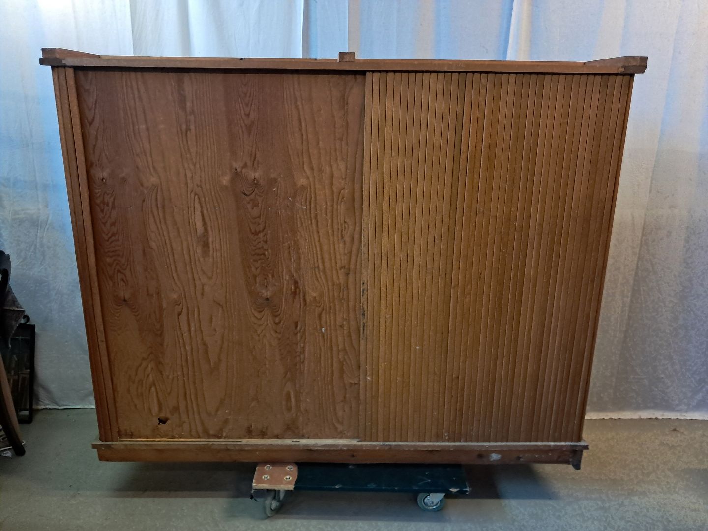 Jalousiskab i fineret egetræ, fra 1950erne.