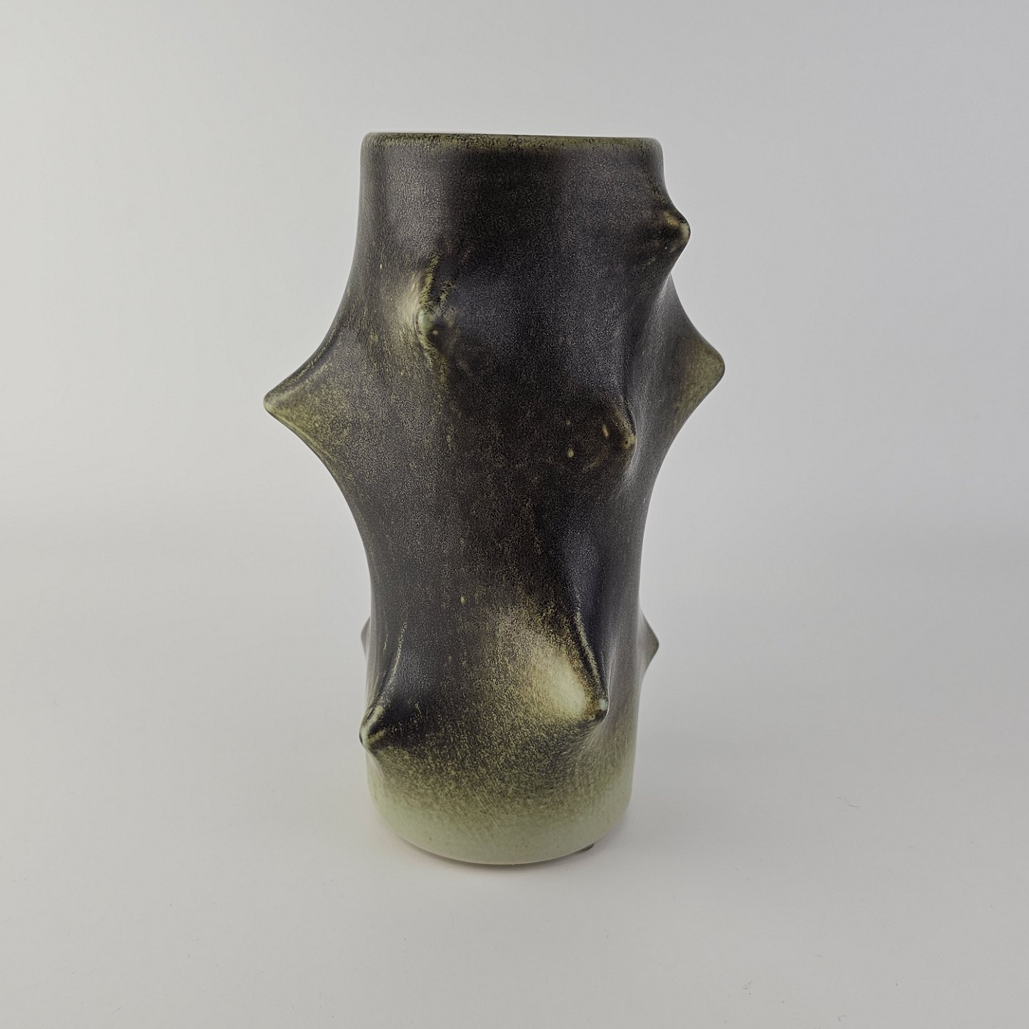 Vase i glaseret stentøj med motiv af en rosenthorn