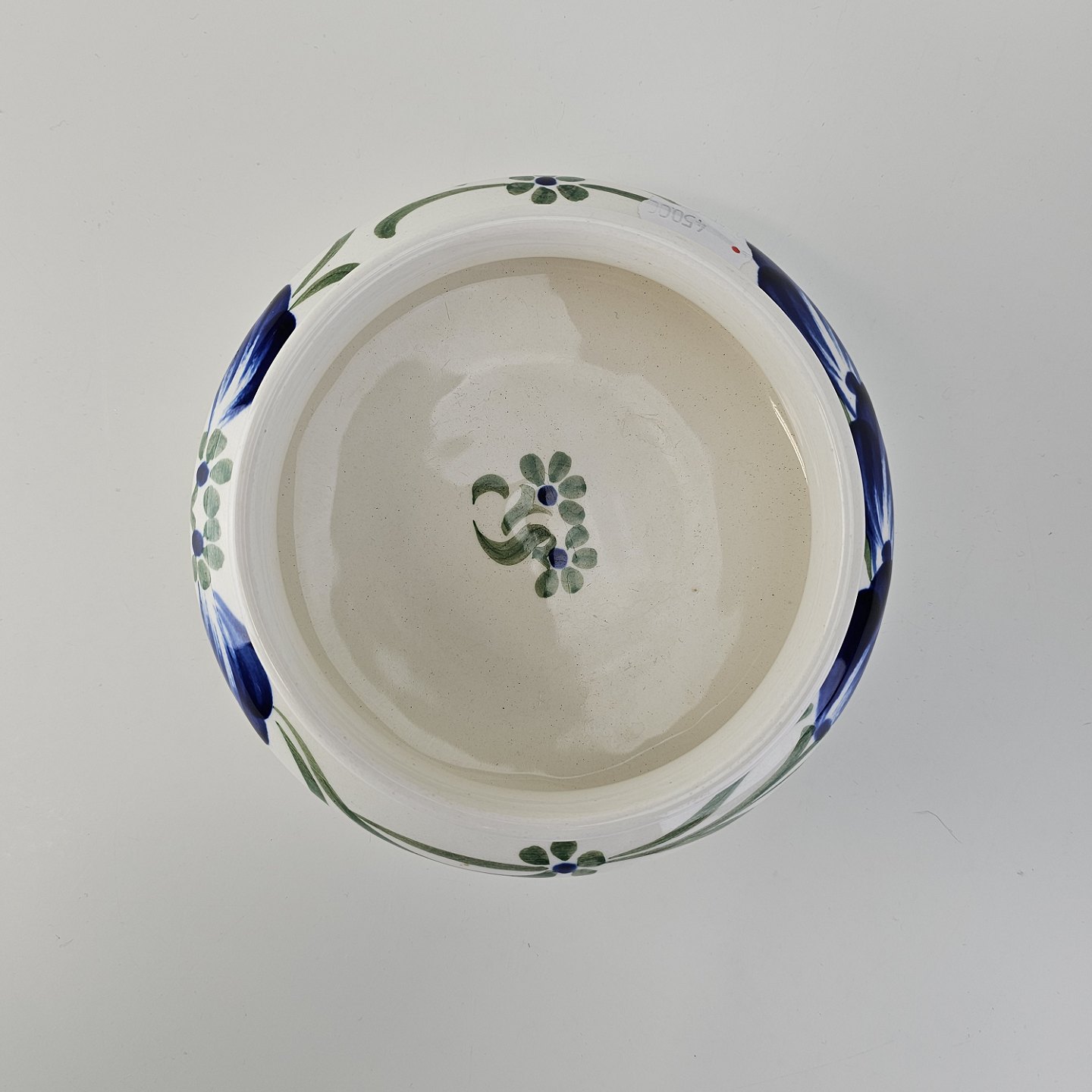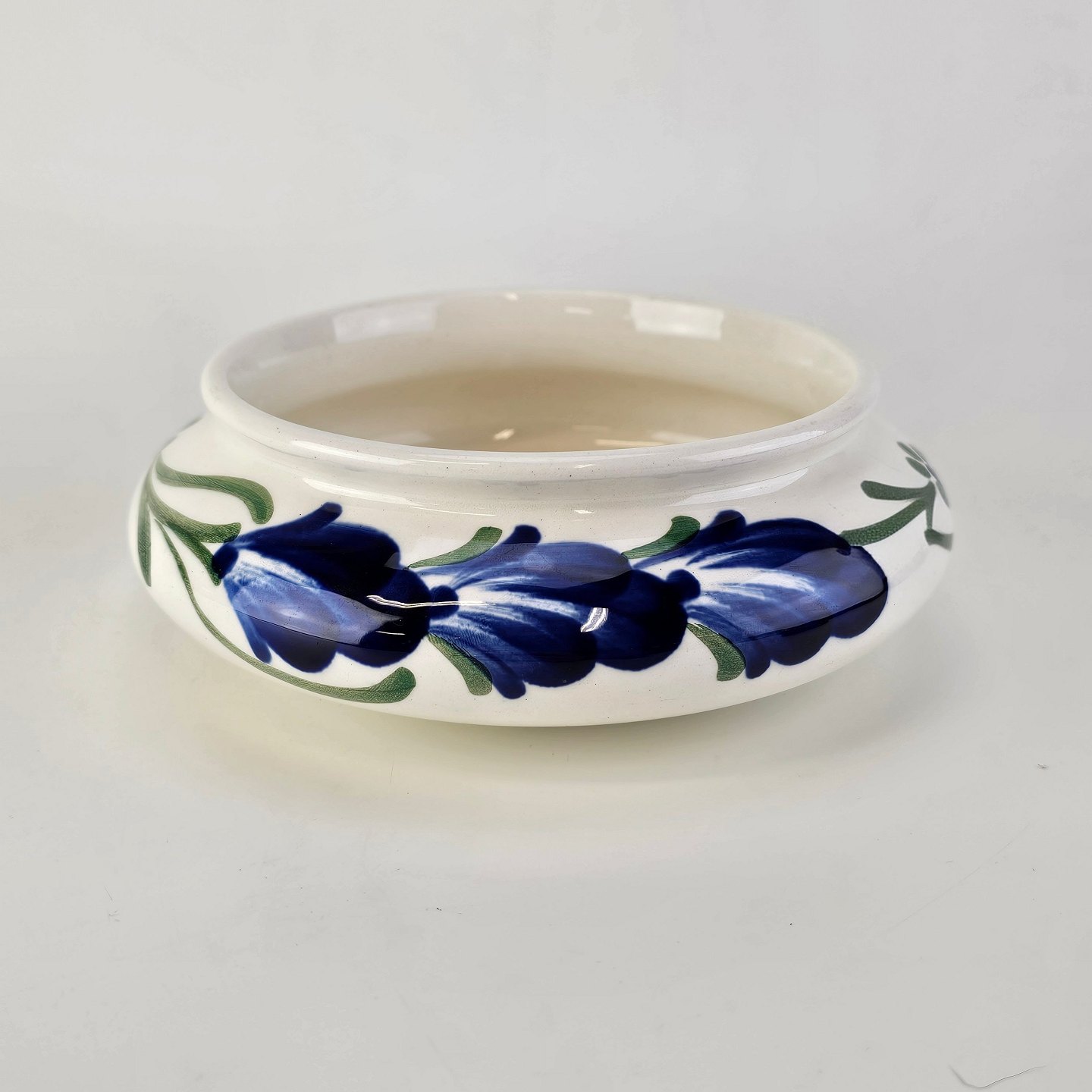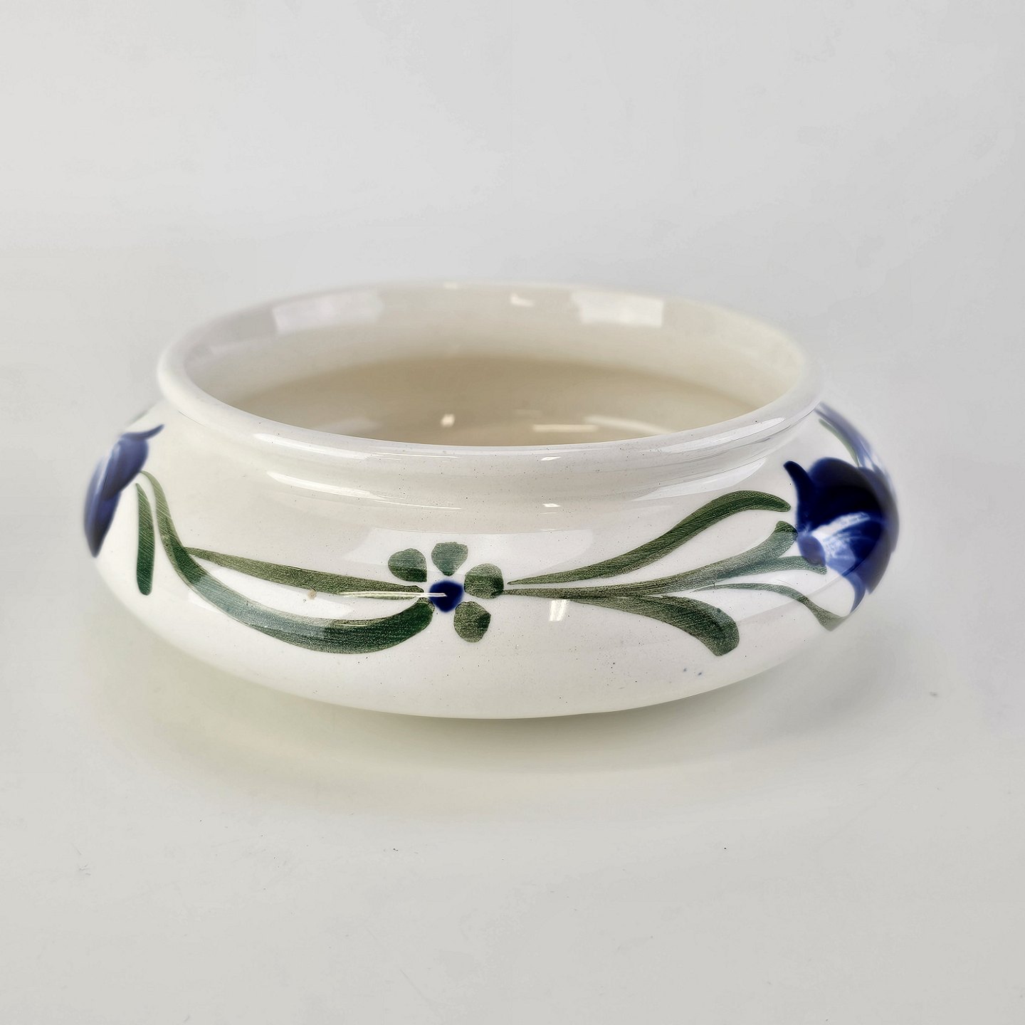 Rund skål i hvid fajance fra stellet Blå Cenerarier