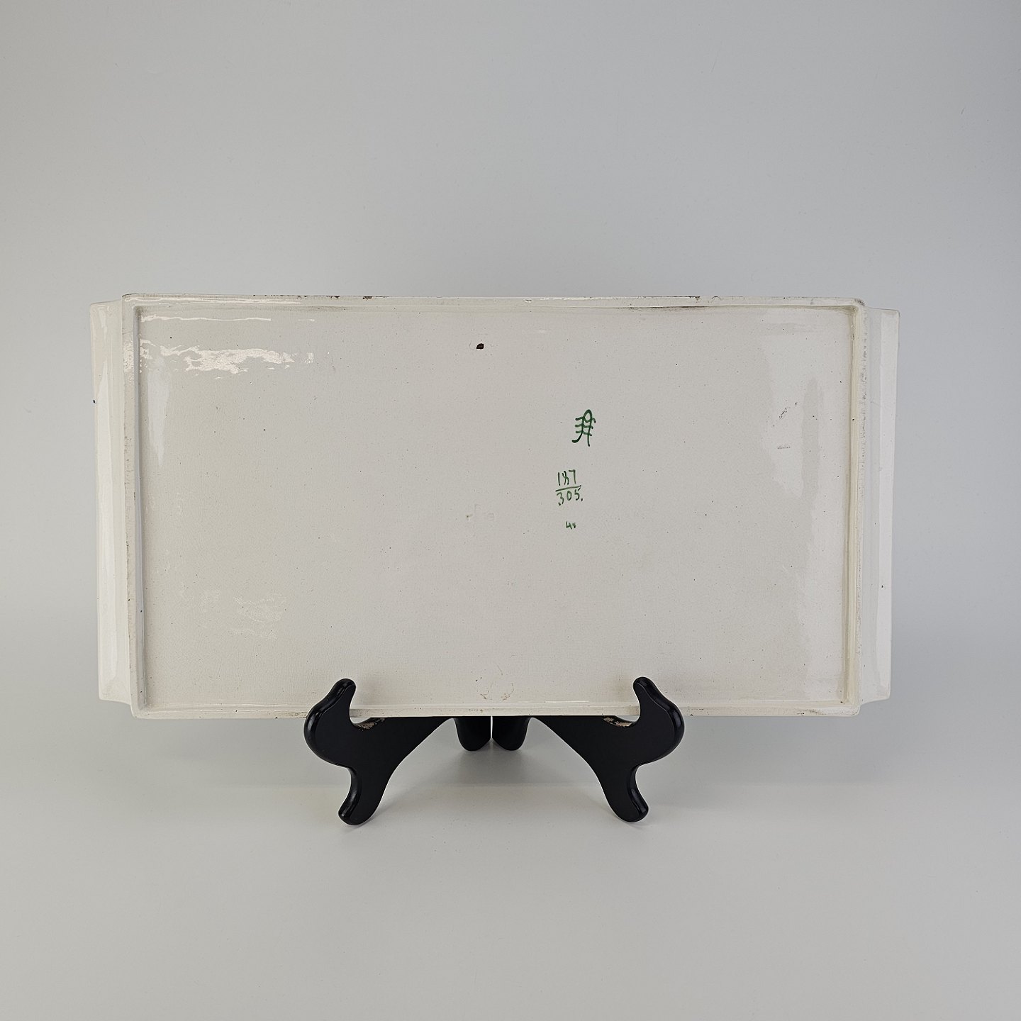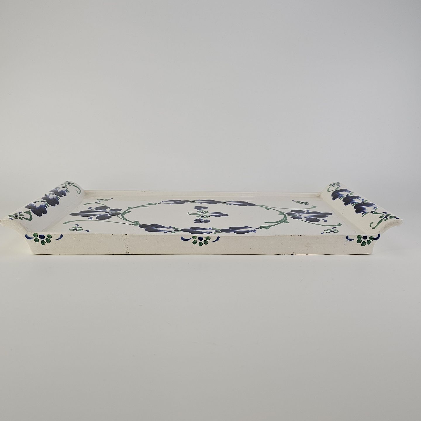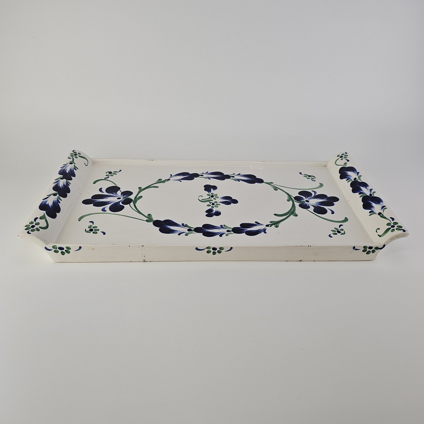 Rektangulært fad i hvid fajance fra stellet Blå Cenerarier