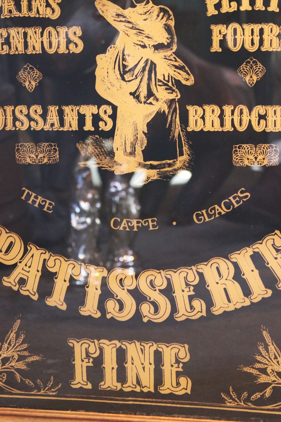 Reklame skilt fra en gammel fransk konditor / bageri , malet på glas "Boulagerie"...