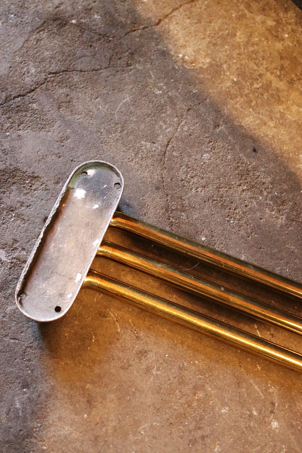 Gammel fransk væghængt håndklæde holder i massiv messing med fin patina...